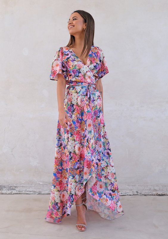 Carole - flower wrap dress with asymetric skirt