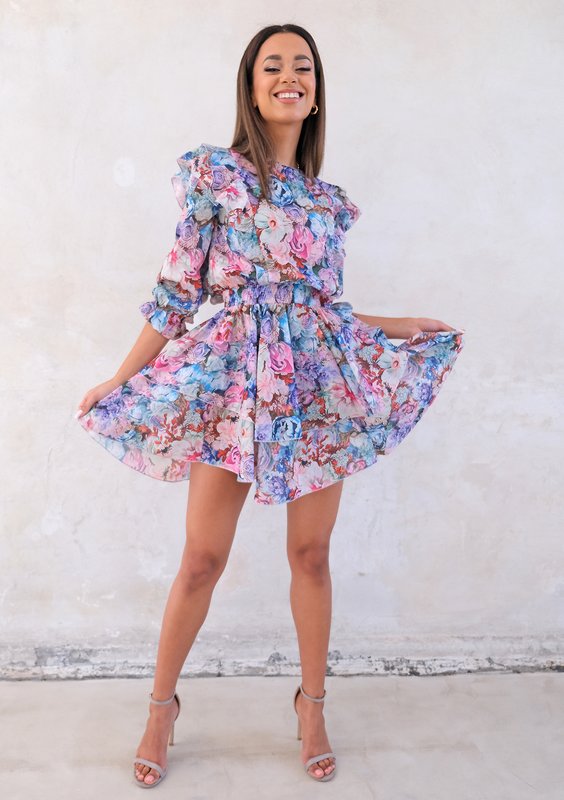 Rosa - mini dress with frills spring flowers print