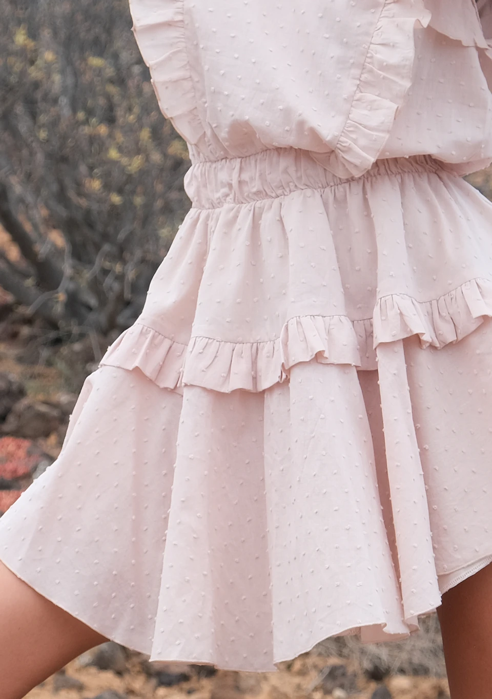 Marianne - mini boho beige dress with frills