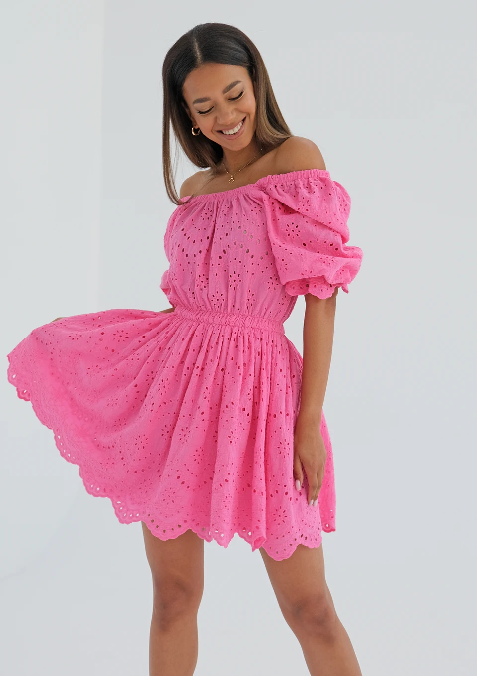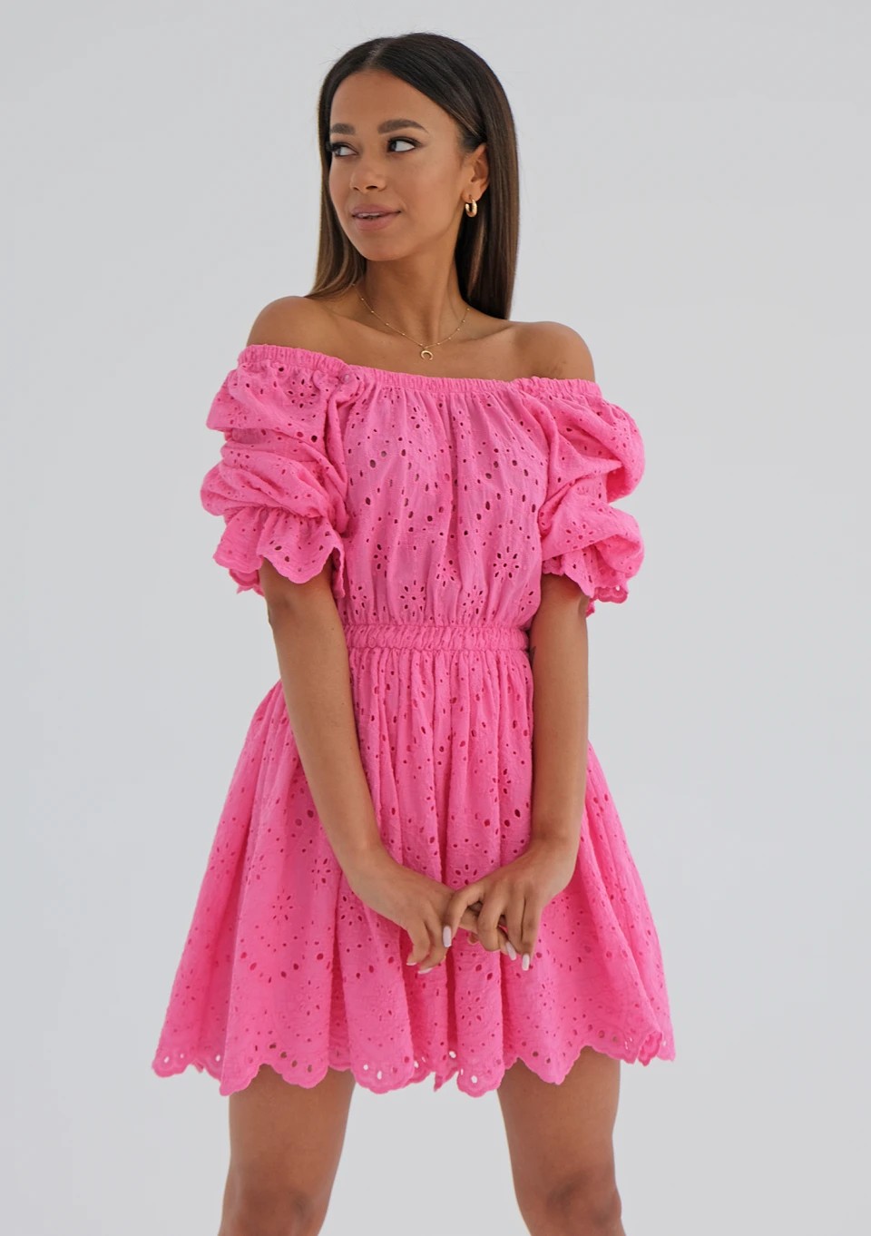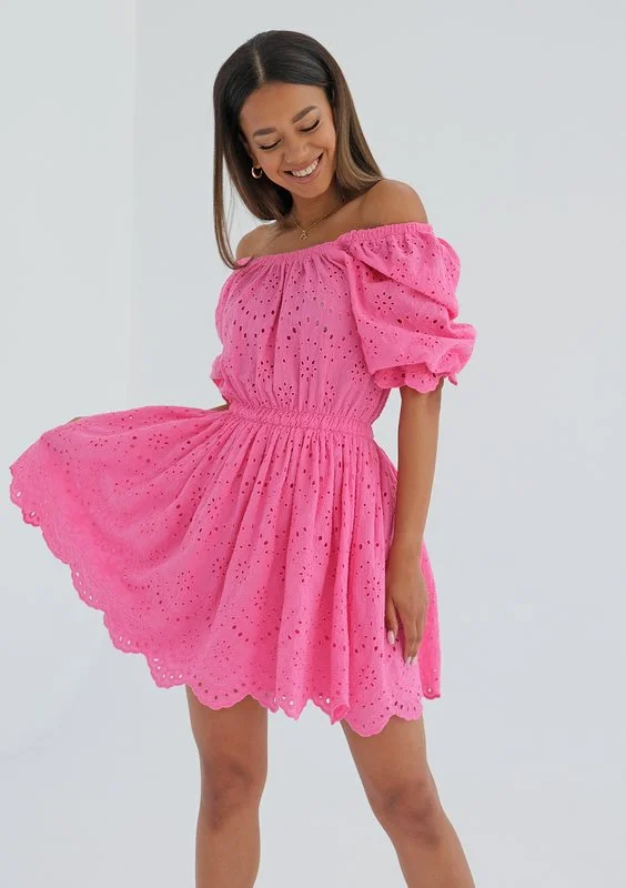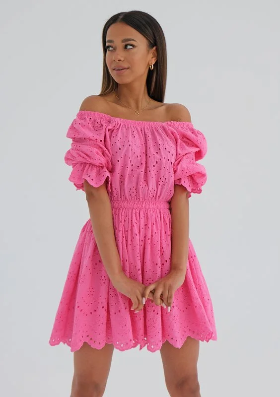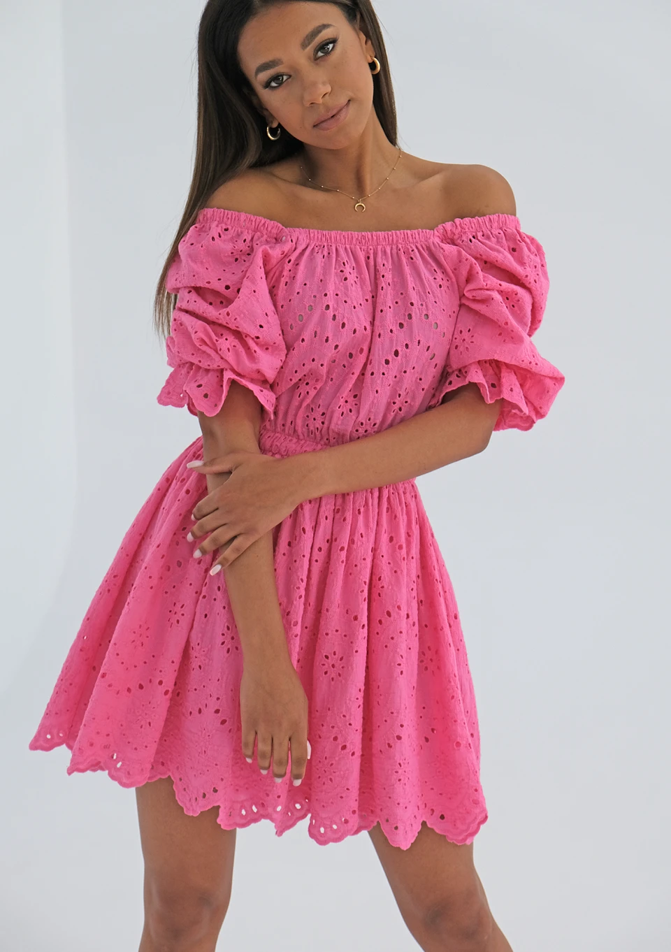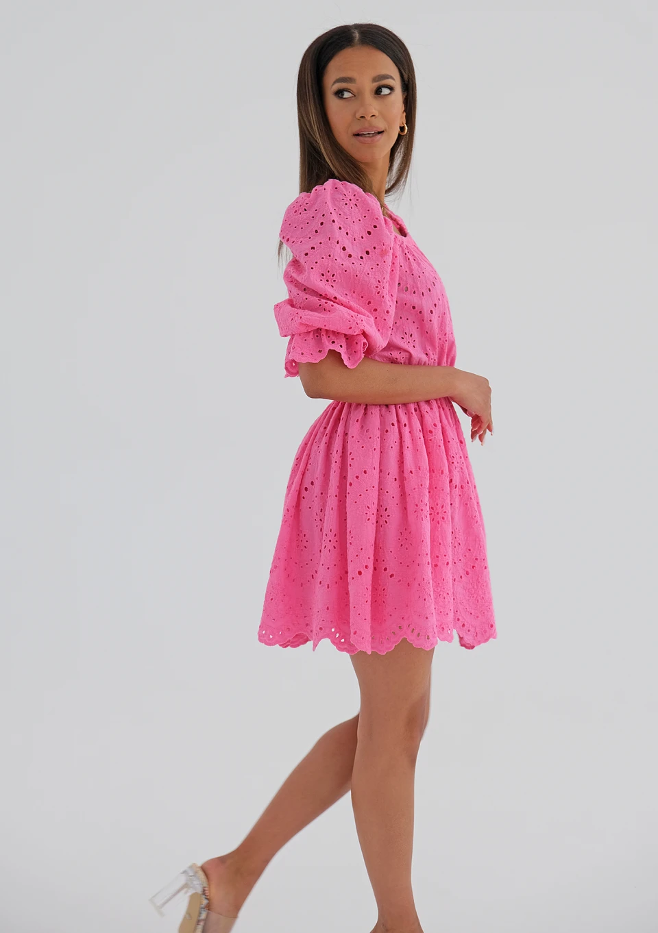 On sale! -40% Jovite - openwork pink dress with puff sleeves zł249.99 zł149.99 Lowest price from the last 30 days zł249.99