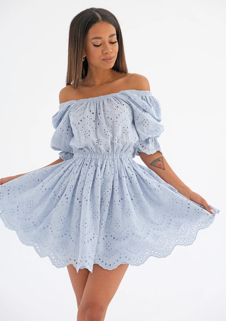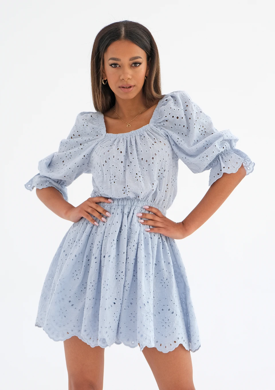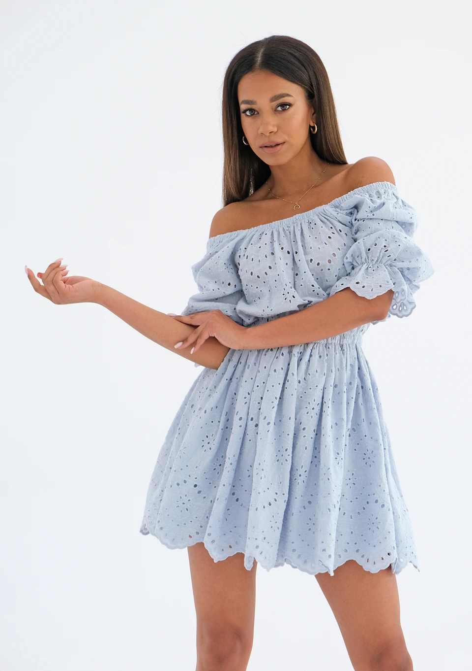 On sale! -40% Jovite - openwork light blue dress with puff sleeves zł249.99 zł149.99 Lowest price from the last 30 days zł249.99