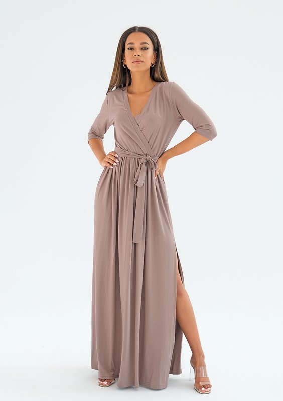 Isabelle - asymmetric maxi beige satin dress