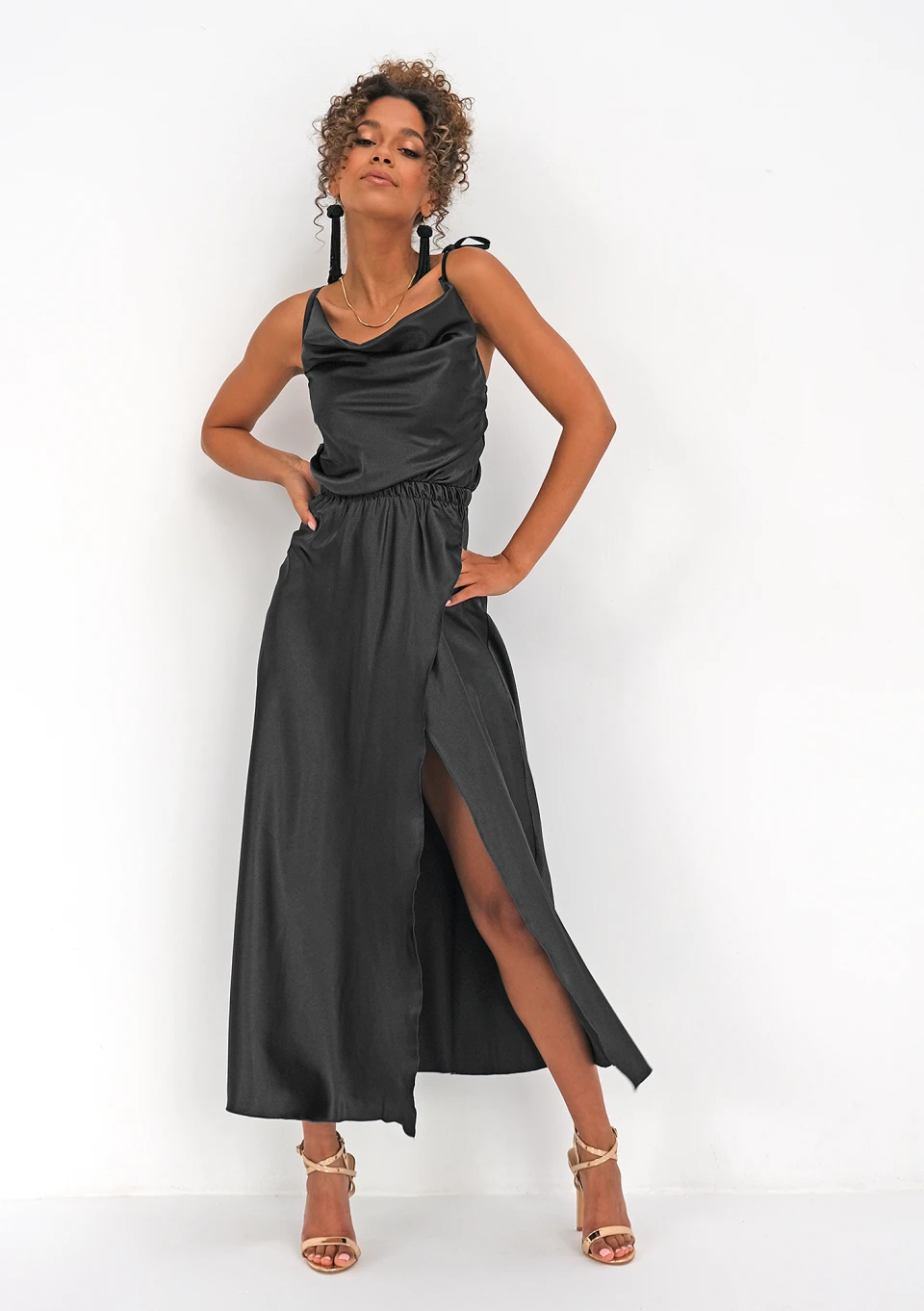 Marion - midi satin black dress
