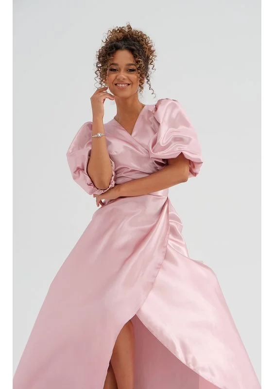 Lorraine - maxi powder pink dress with puffed sleeves