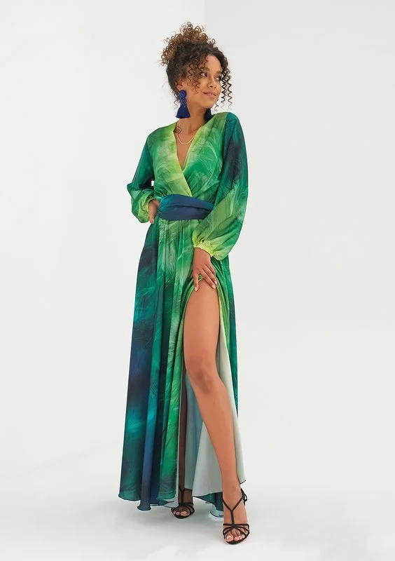 Salome - maxi wrap dress ombre green