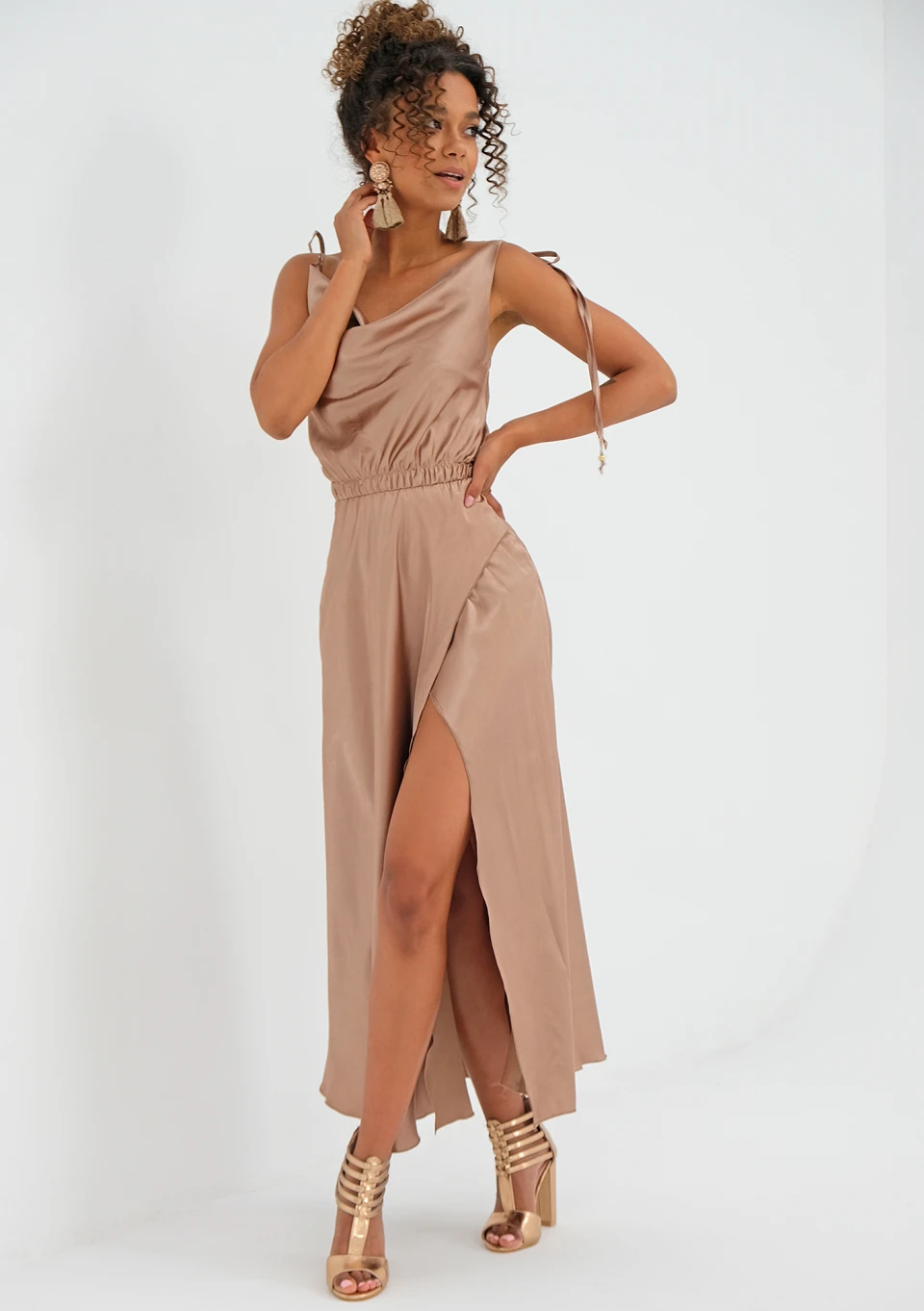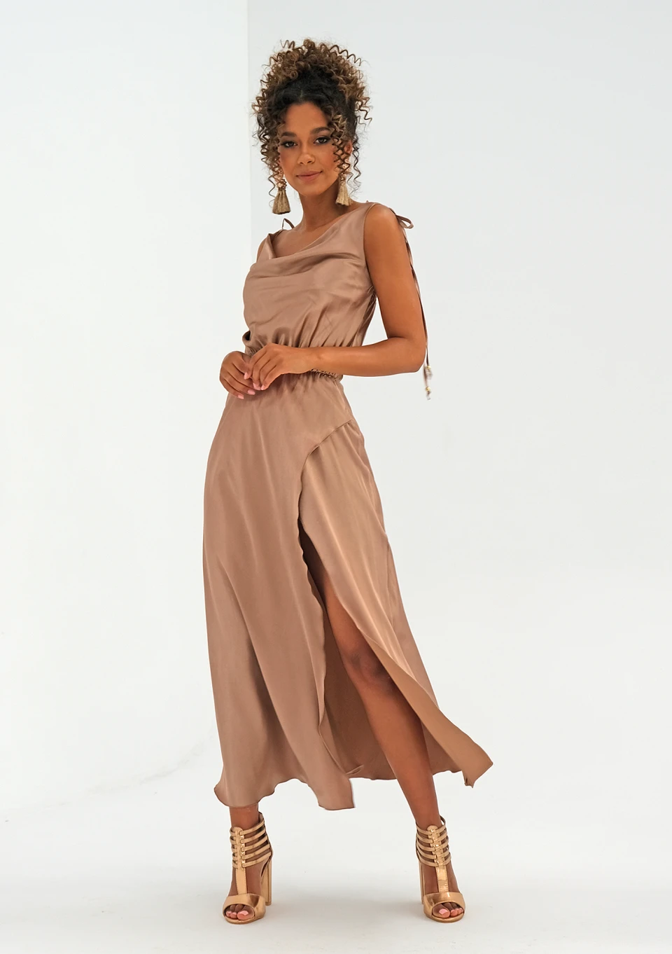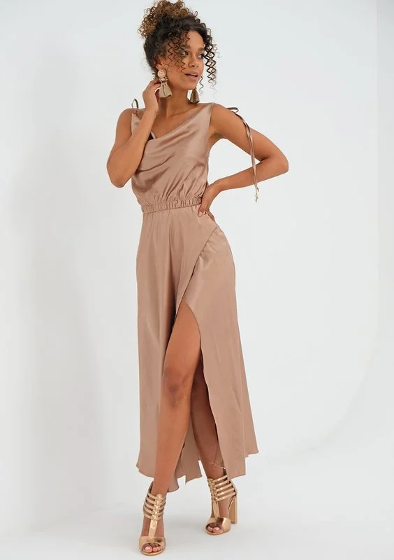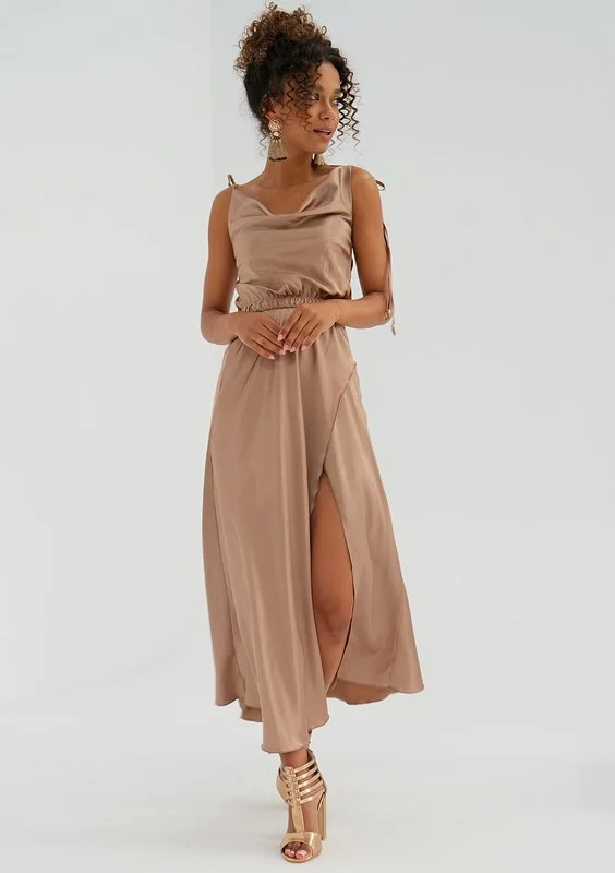 Marion - midi beige satin dress