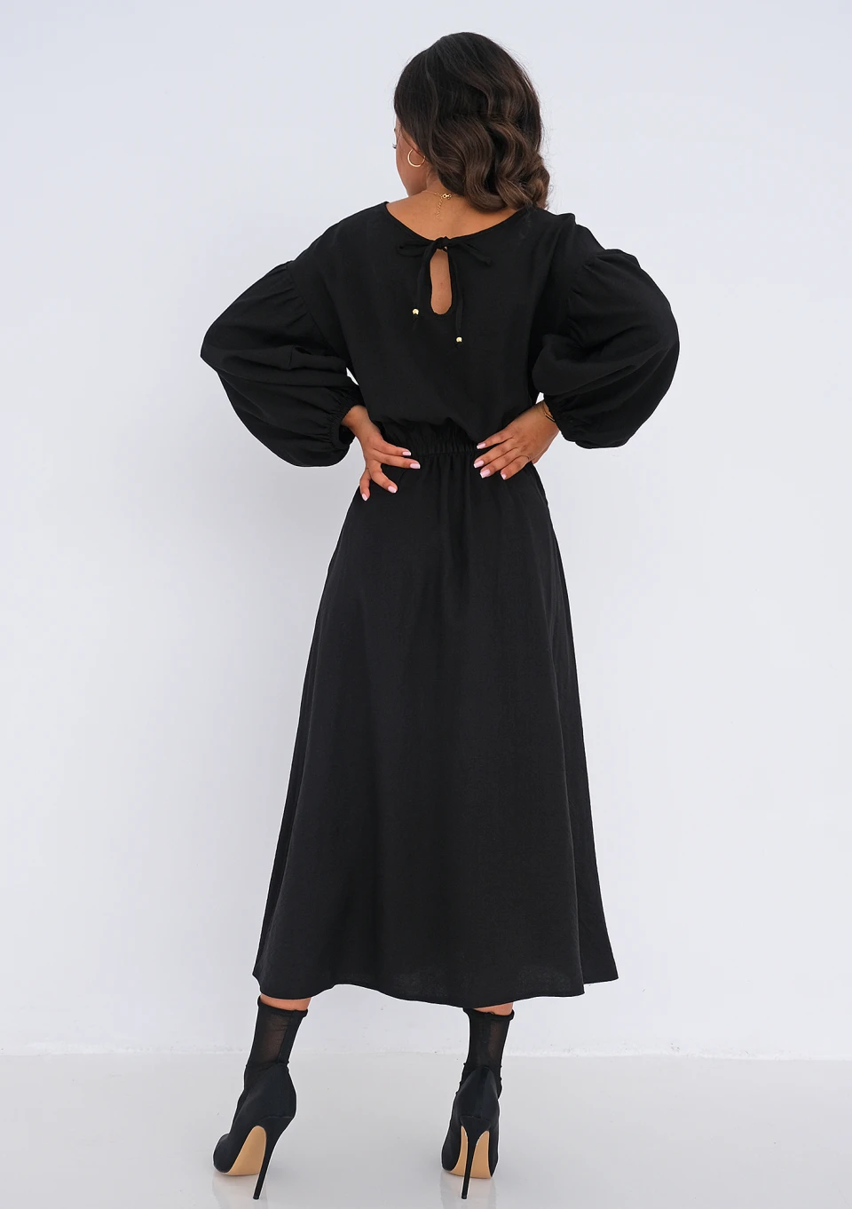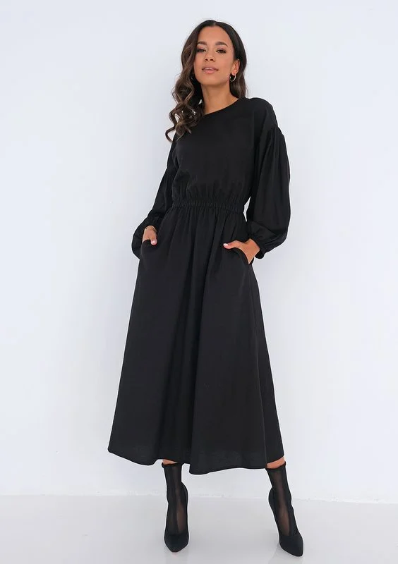 Greta - Black muslin midi dress