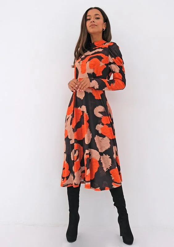 Valentina - orange printed soft dress