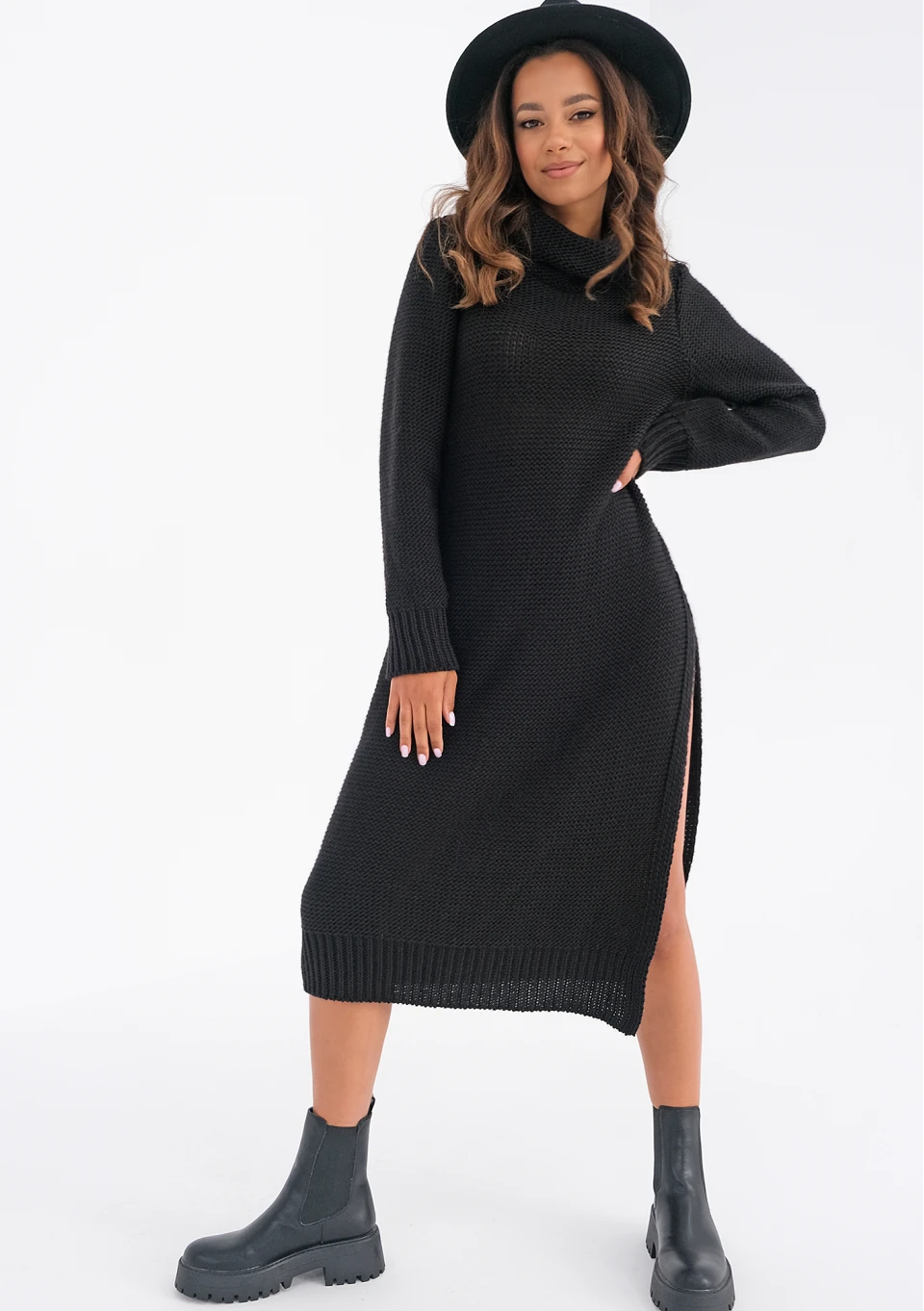 Adriana - midi knitted black dress