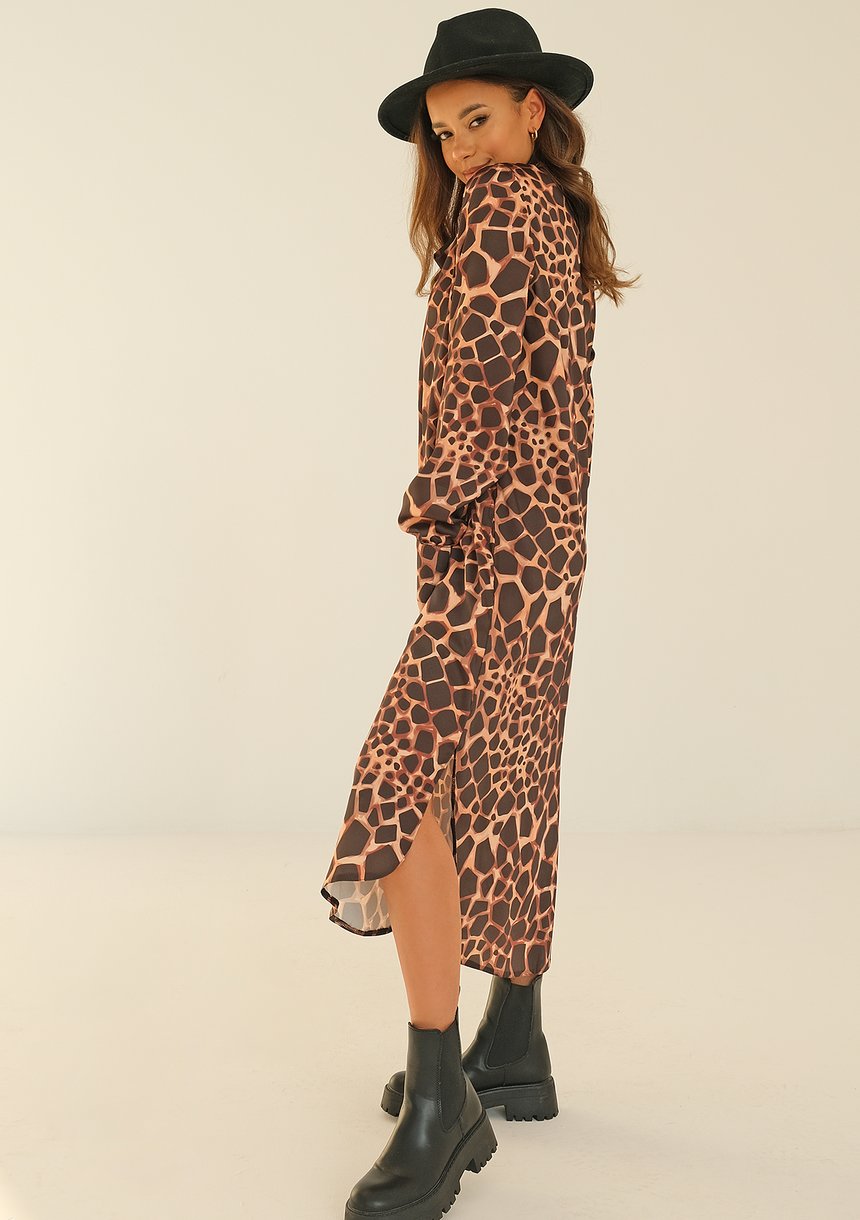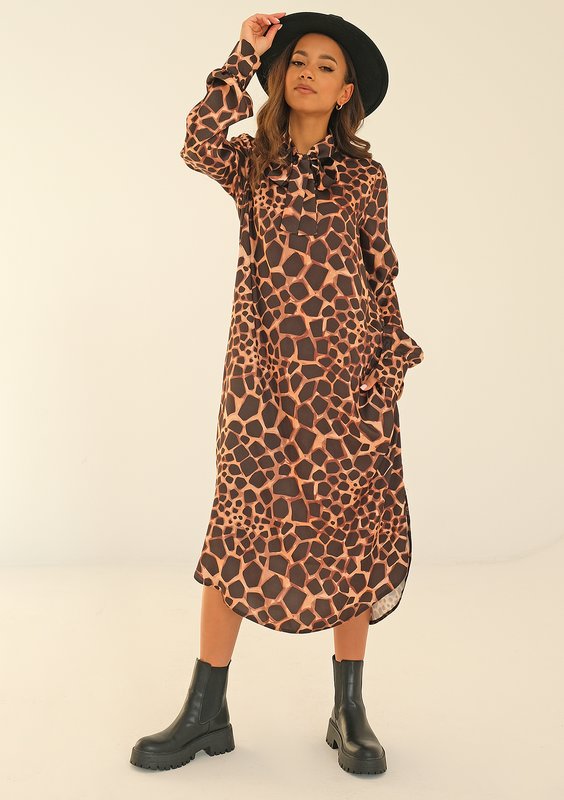 Margot - animal printed dress with a tied collar