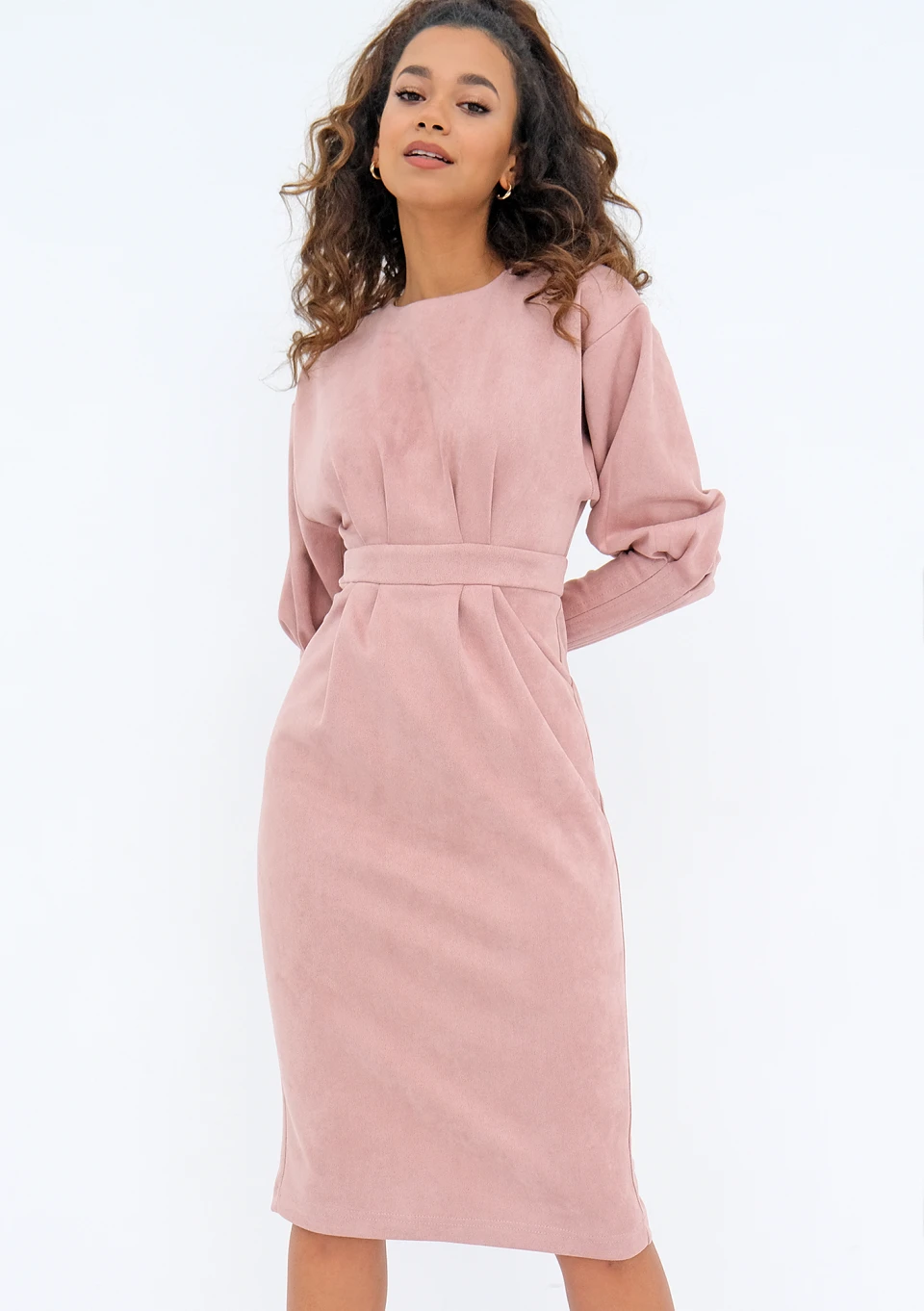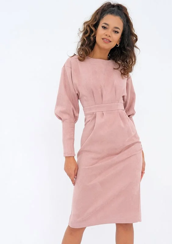 Agnese - midi powder pink eco suede dress