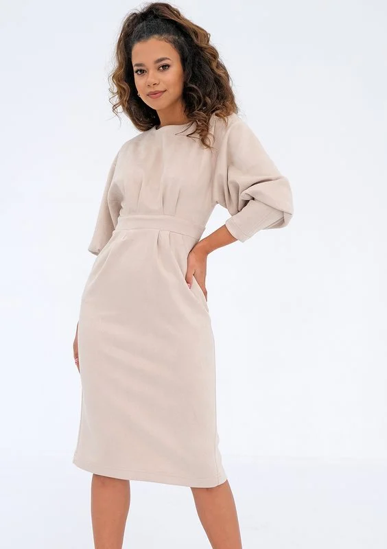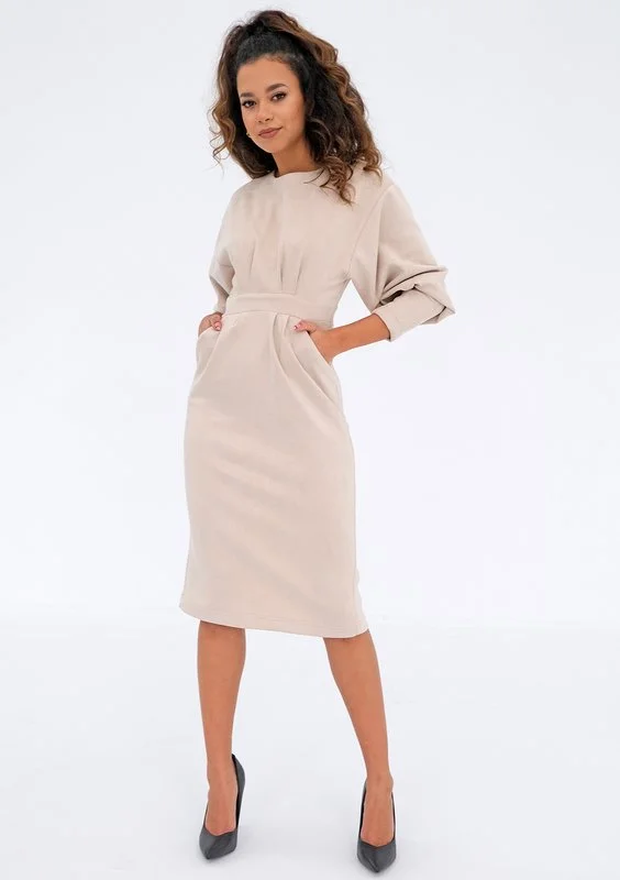 Agnese - midi beige eco suede dress