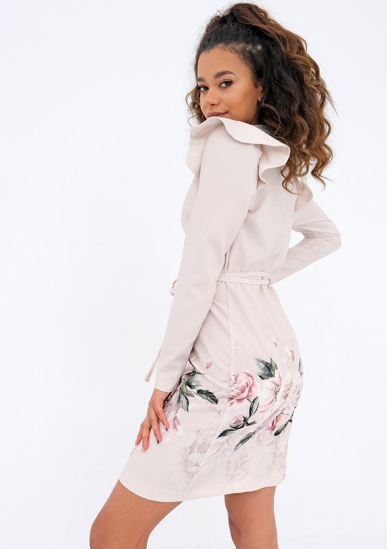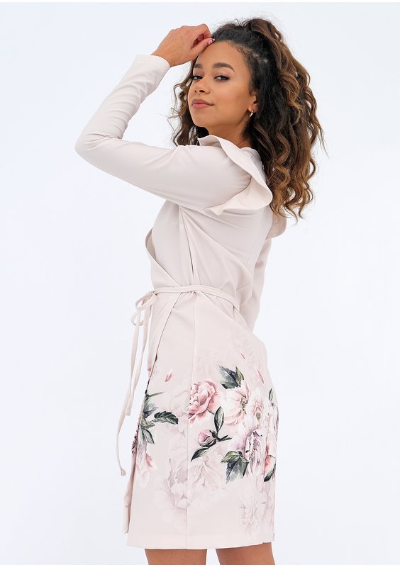 Nolita - nude wrap dress with a floral border