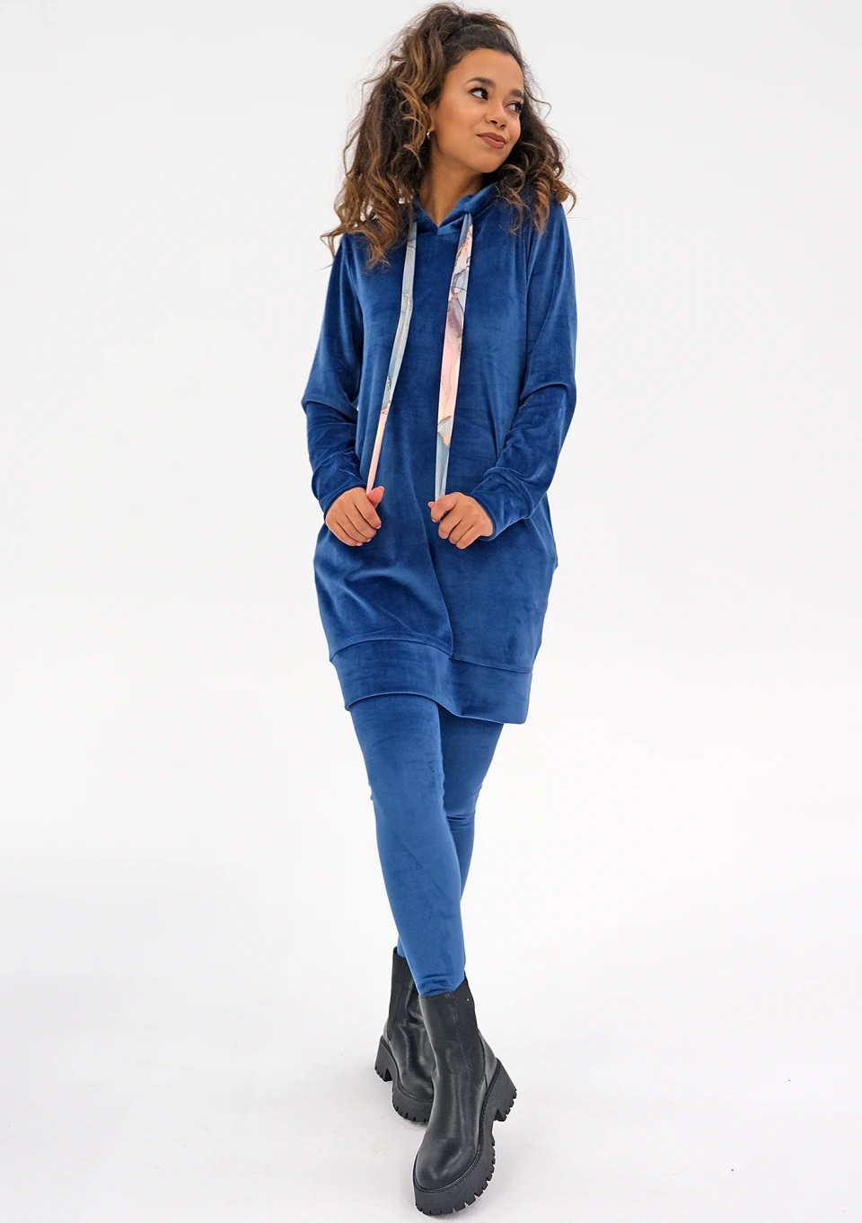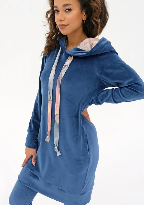 Mily - blue velvet hooded dress with marble print