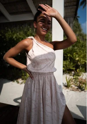 Grace - beige snake printed maxi dress