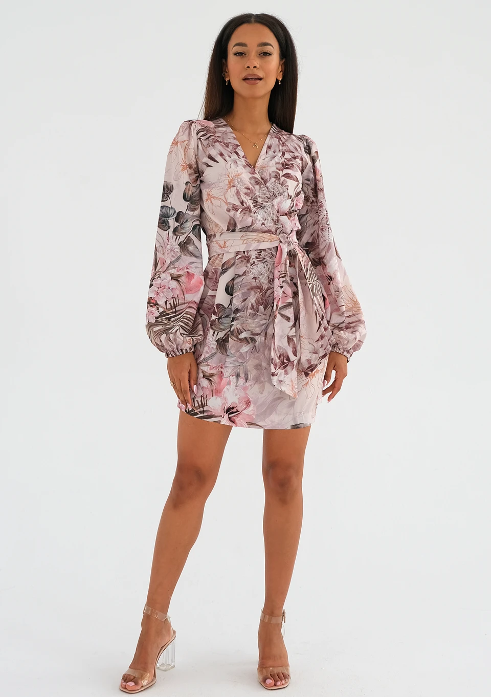 Noemi - Pink mini dress with a flowers print