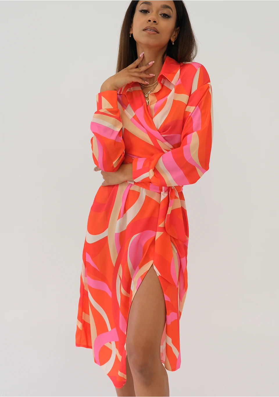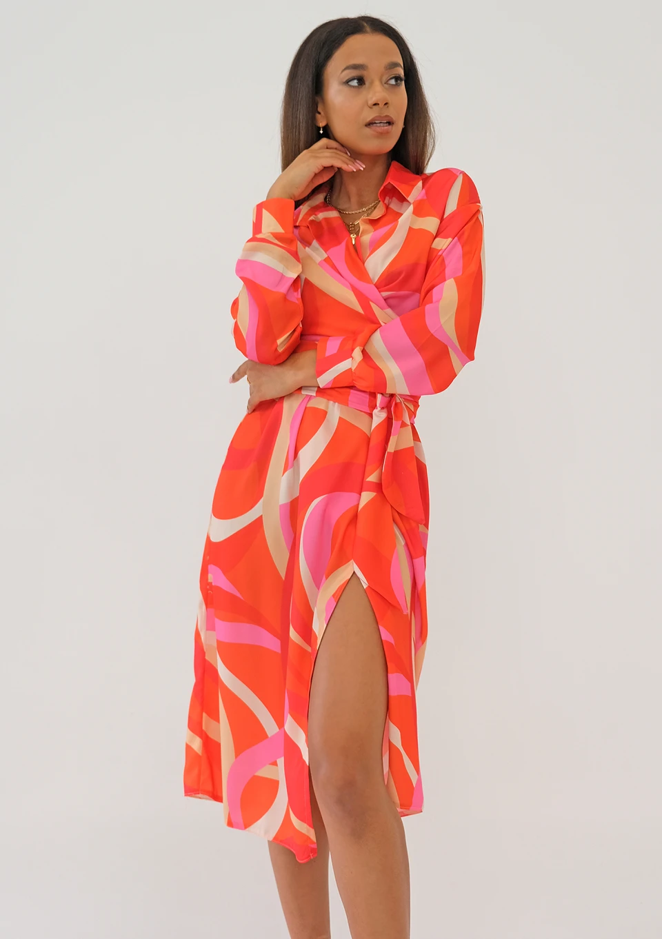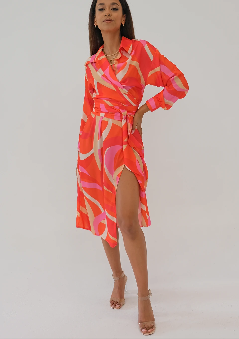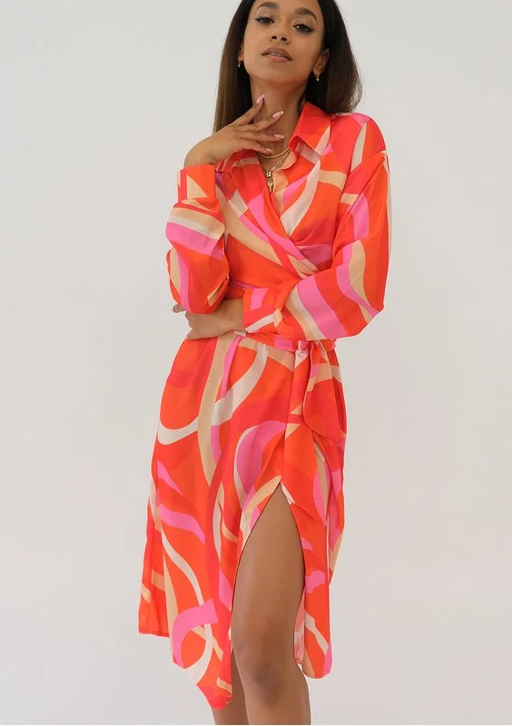 Emily - Orange printed midi wrap dress