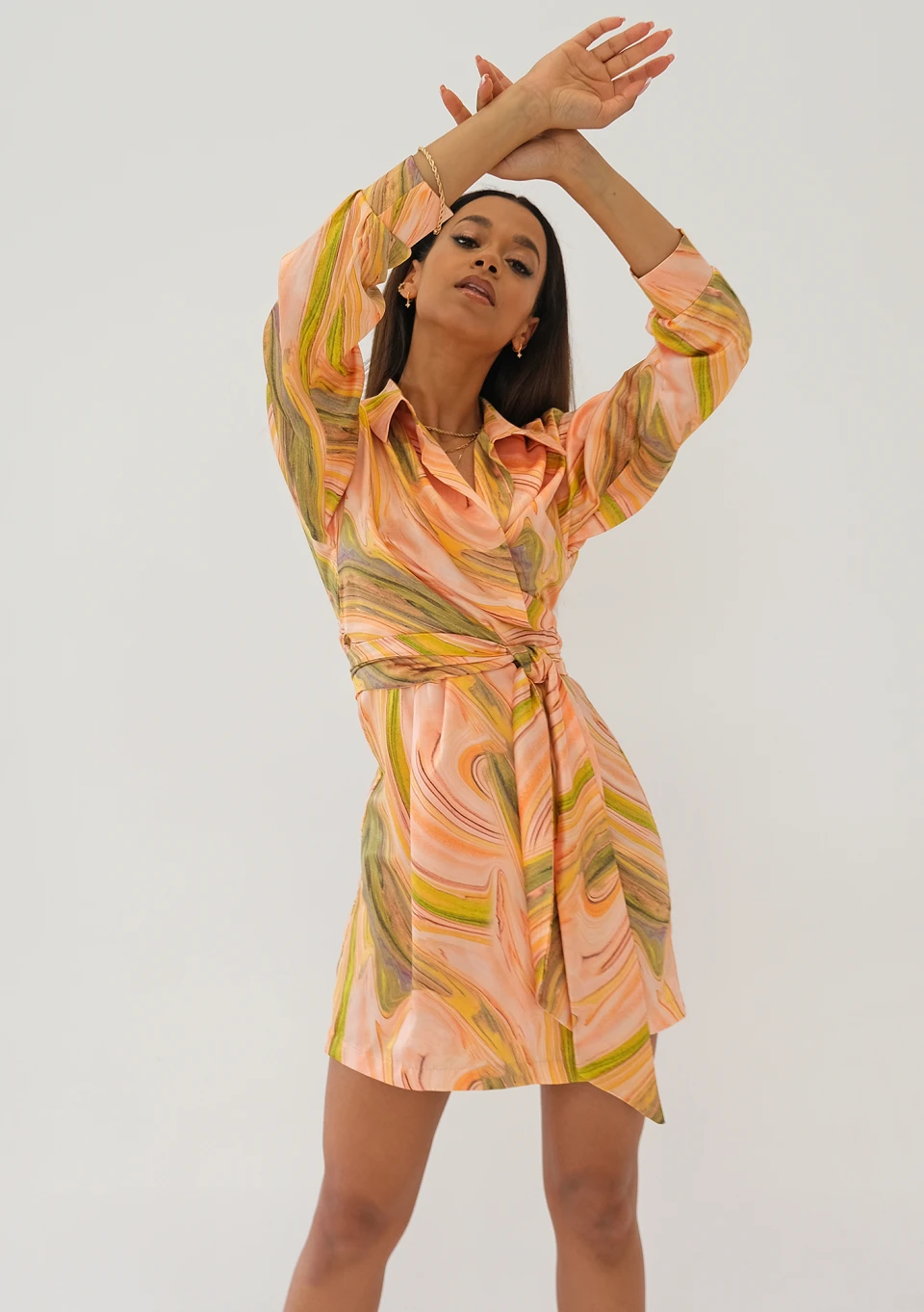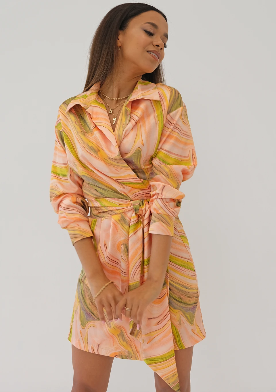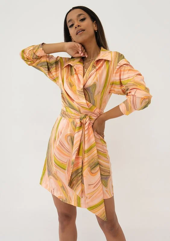 Suzie - Pastel printed mini wrap dress