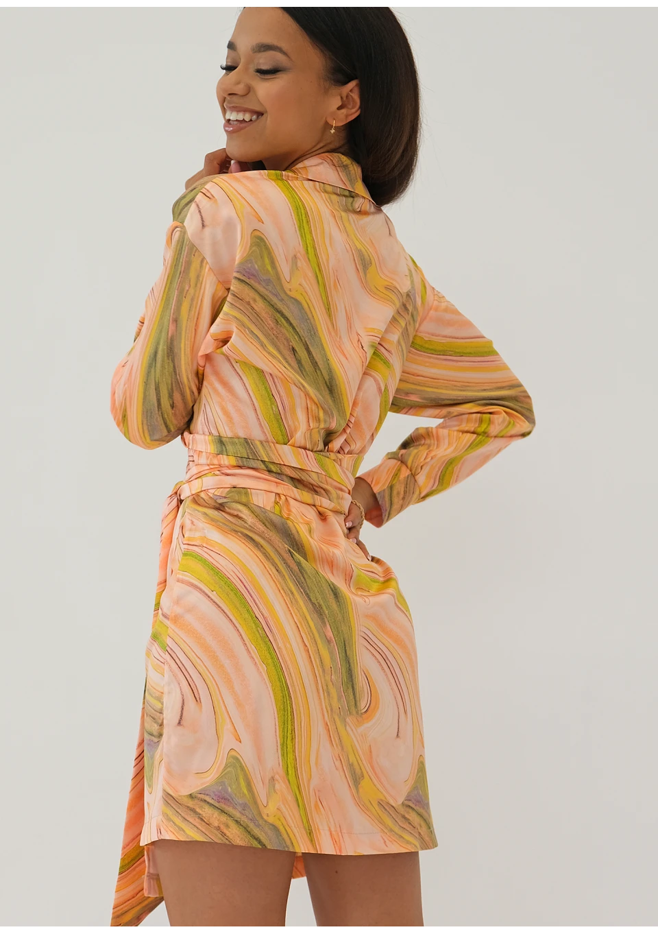 Elvire - midi satin dress green marble
