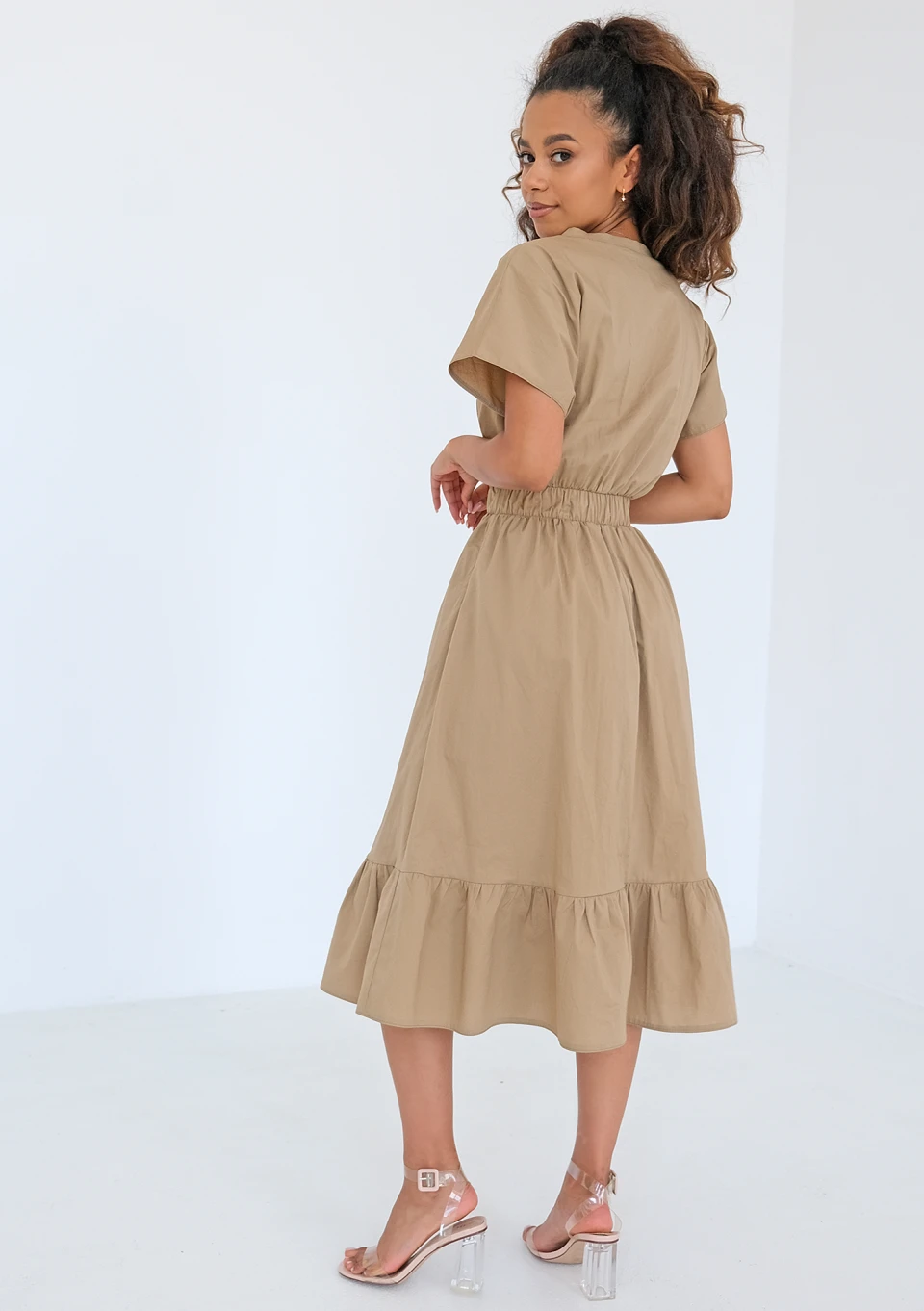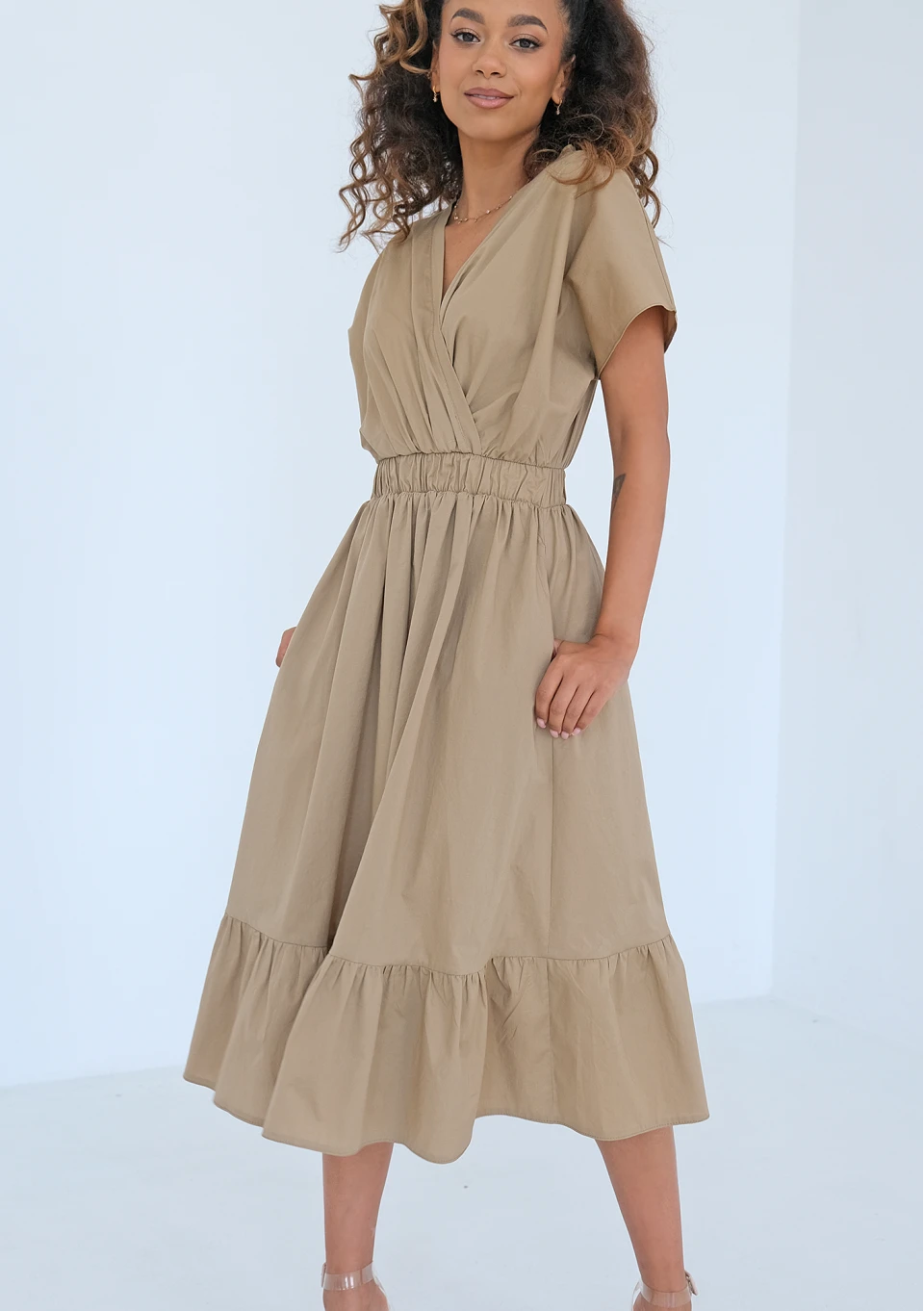 Otavia - Beige midi dress with a frill