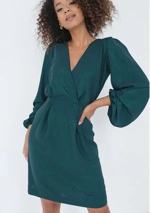 Jak każda sukienka z Mosquito, ta również robi wrażenie. Spodziewałam się trochę innego, bardziej mięsistego materiału sugerując się zdjęciami na stronie, jednak to tylko kwestia mojego niedoczytania składu materiałowego i absolutnie nie jest minusem sukienki. Wręcz przeciwnie - materiał jest lekki, więc sukienka będzie idealna również na cieplejsze dni. I ten subtelny brokat... Robi robotę! :) Dekolt rozchodzi się bardziej, niż mogłyby to sugerować zdjęcia, ale tu być może też kwestia wyboru rozmiaru, poza tym można łatwo sobie z tym poradzić. Jak zawsze zakupy w Mosquito bardzo udane!