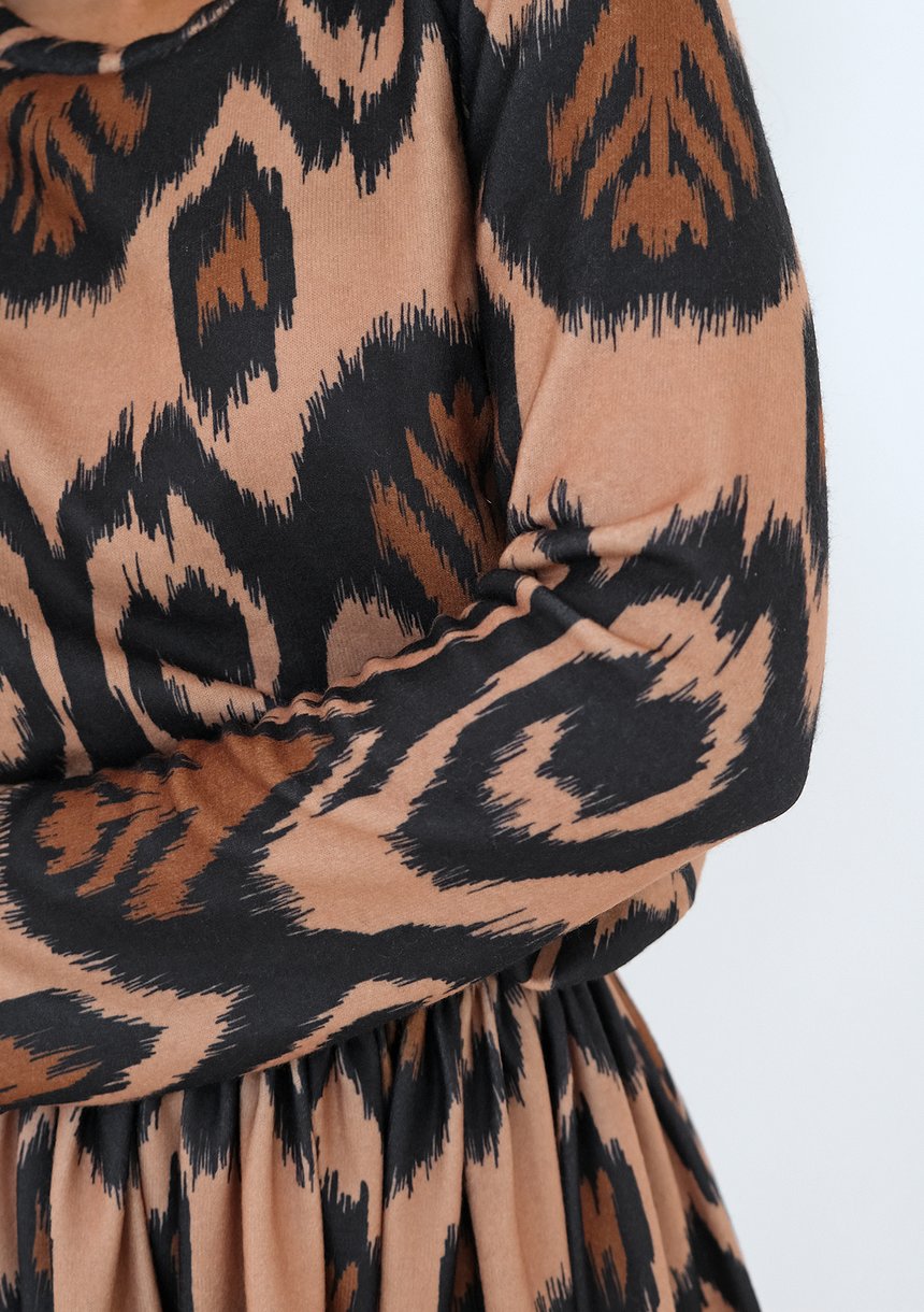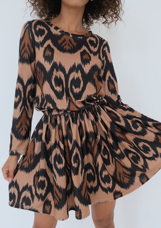 Sara - Brown boho printed mini dress