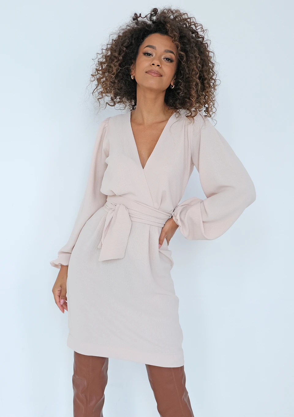 Noemi - Shiny beige mini dress