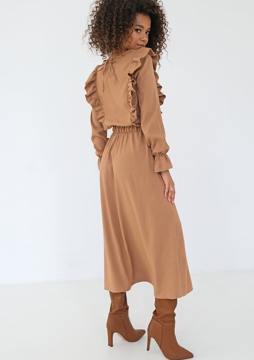 Olena - Caramel brown midi dress with frills