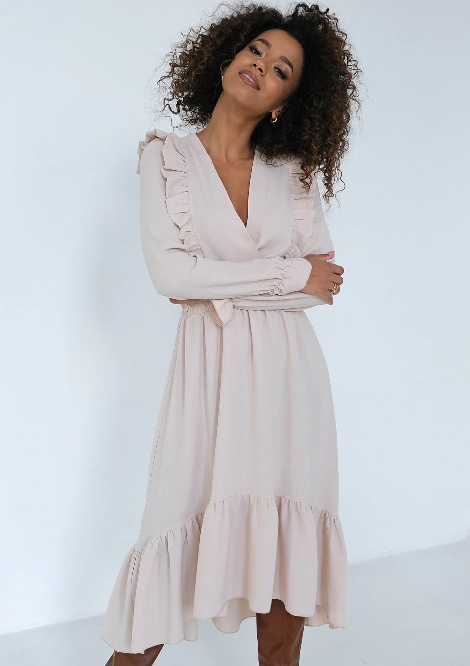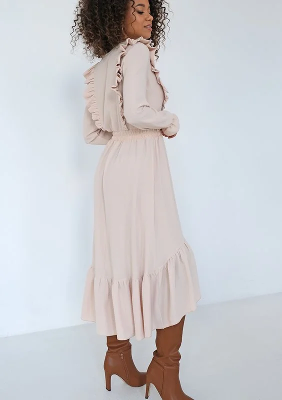 FLOWERS PRINT BLACK CHIFFON DRESS WITH FRILL