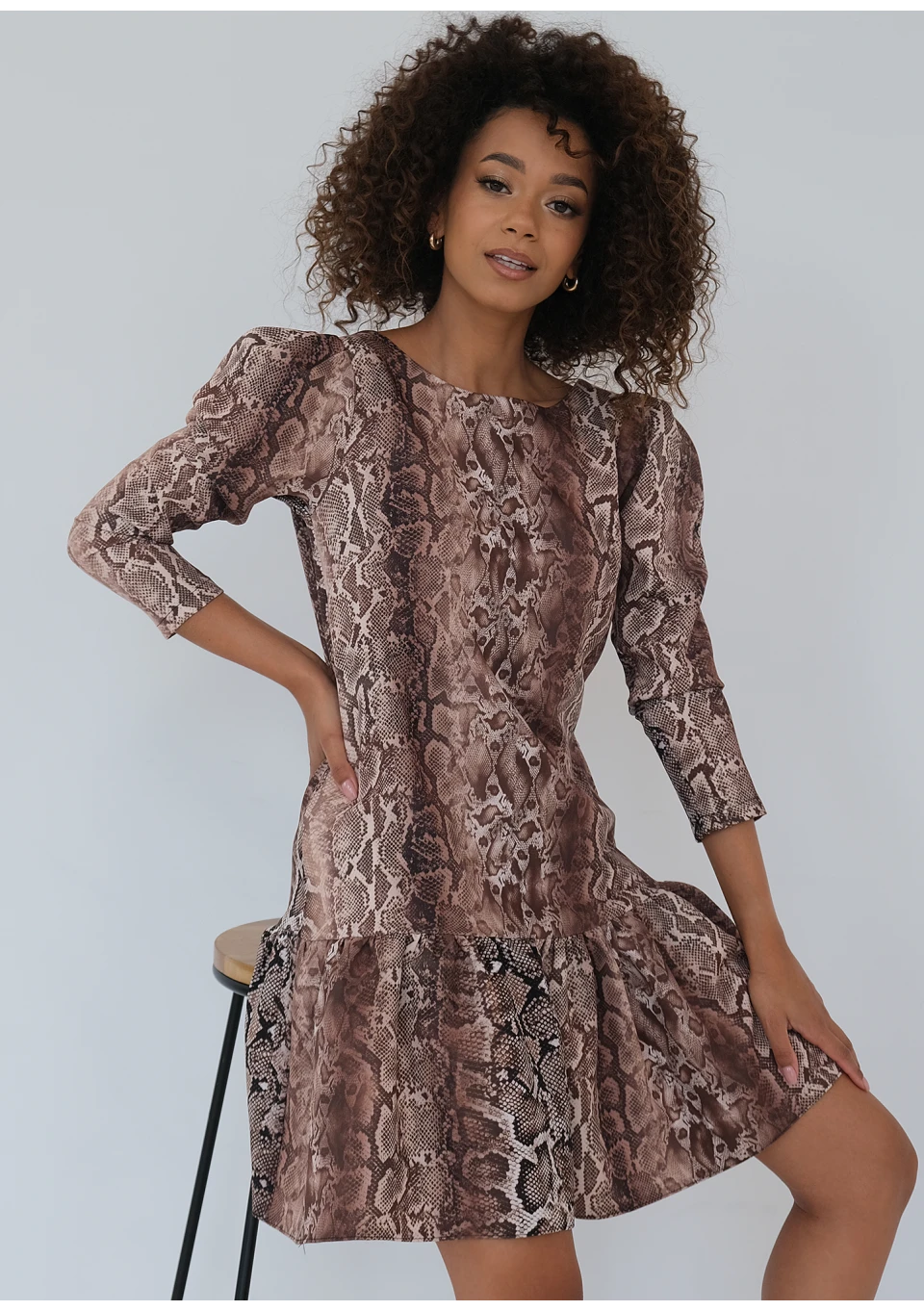Lila - Latte beige mini flared dress