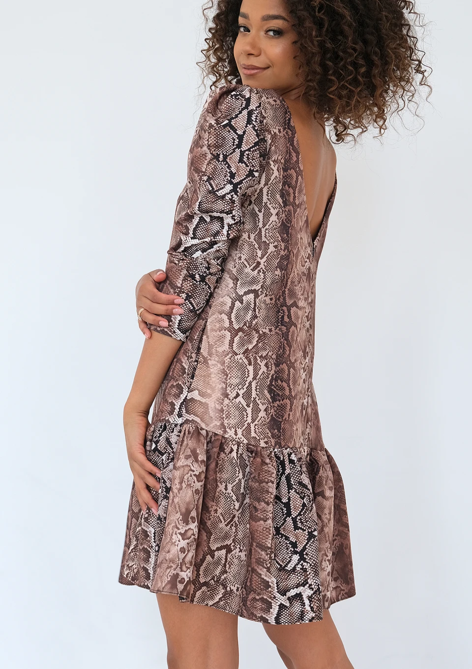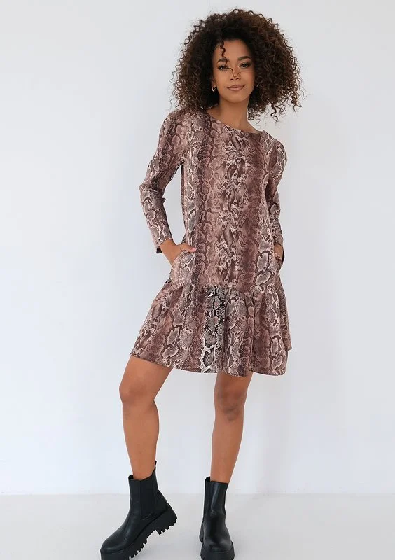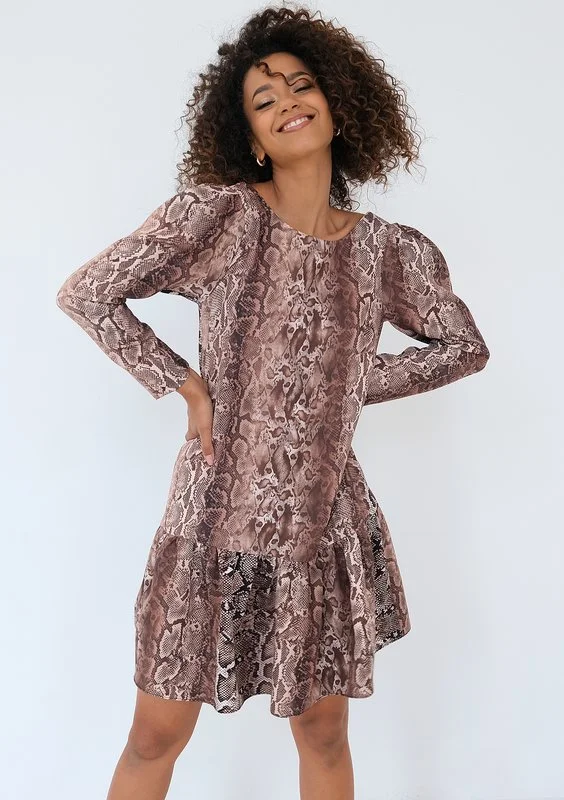 Maud - Boho brown muslin mini dress