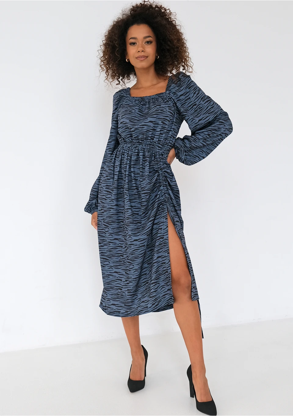 Irma - Blue zebra printed midi dress