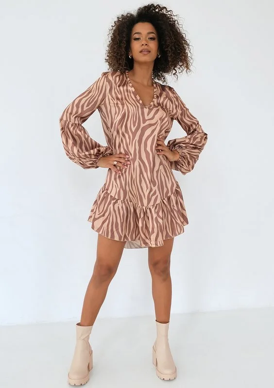 Maud - Boho brown muslin mini dress