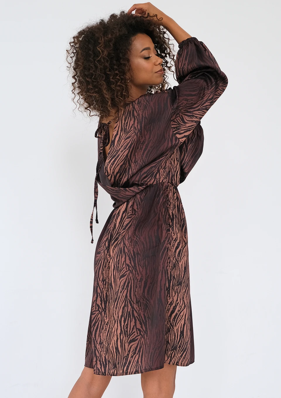 -30% Irene - Brown zebra printed midi dress zł249.99 zł174.99 Lowest price from the last 30 days zł249.99
