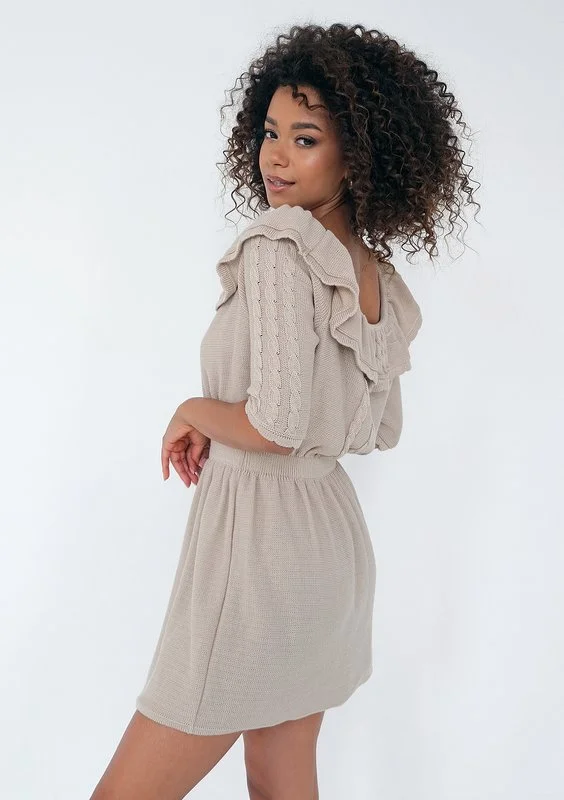 Elia - Beige knitted mini dress