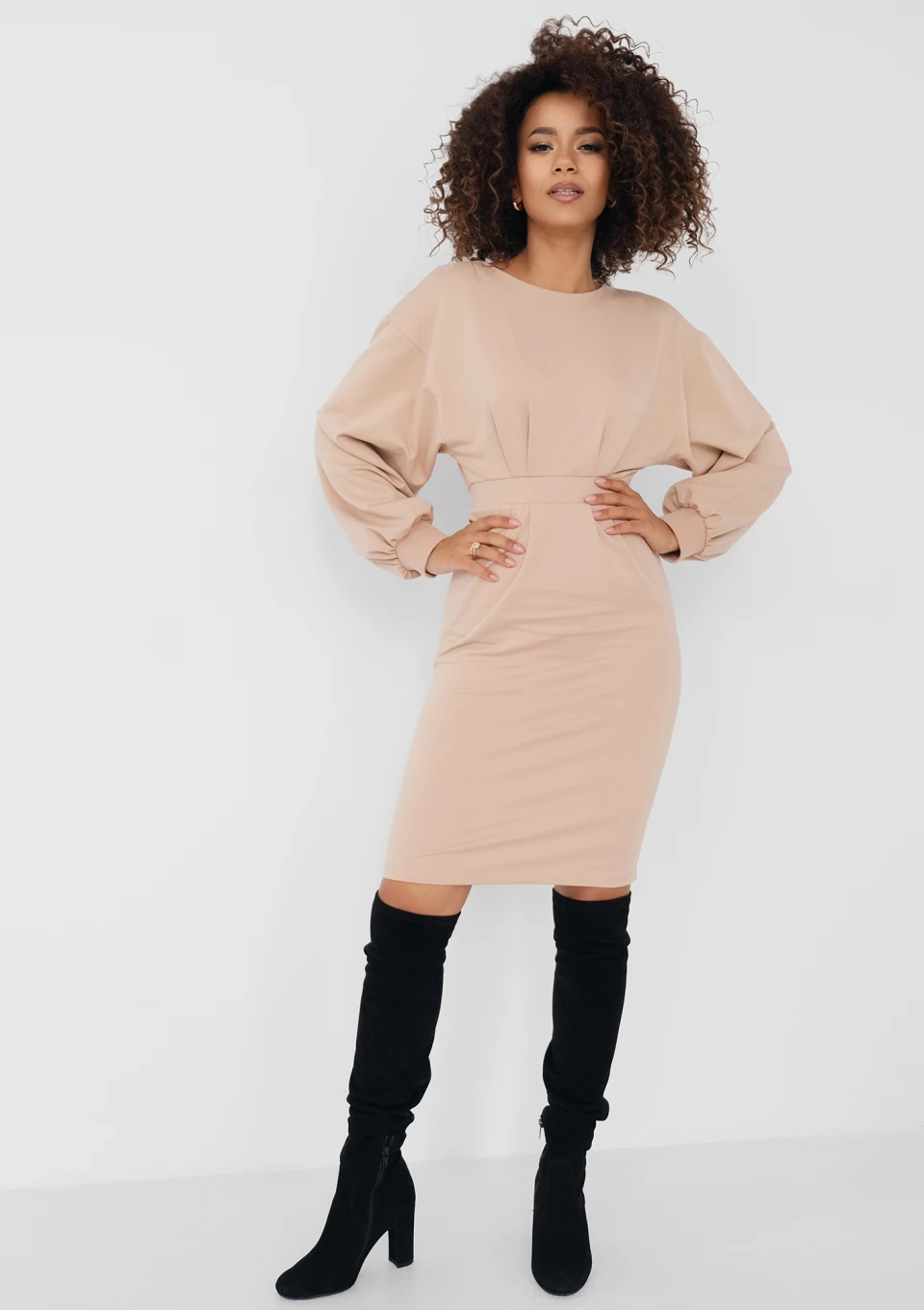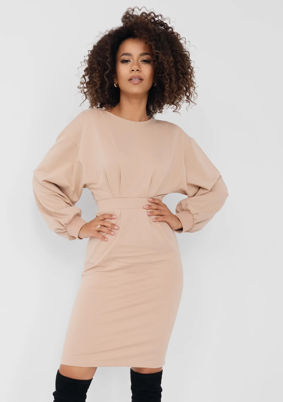 Shila - Latte beige knitted midi dress