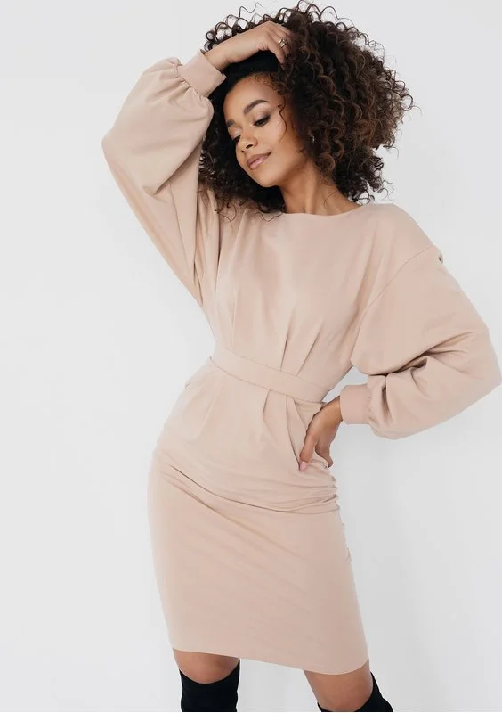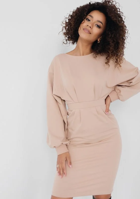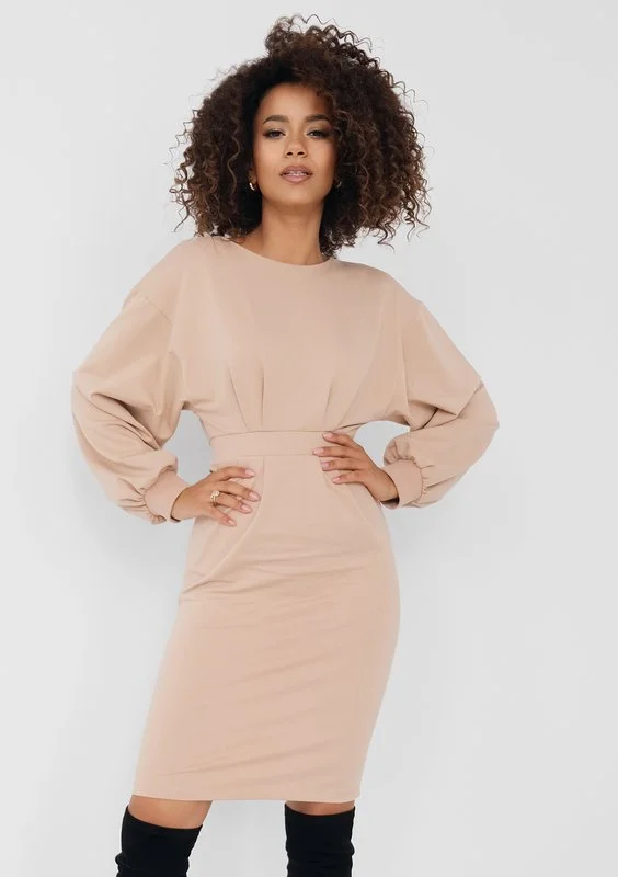 Mirelle - Beige fitted midi dress