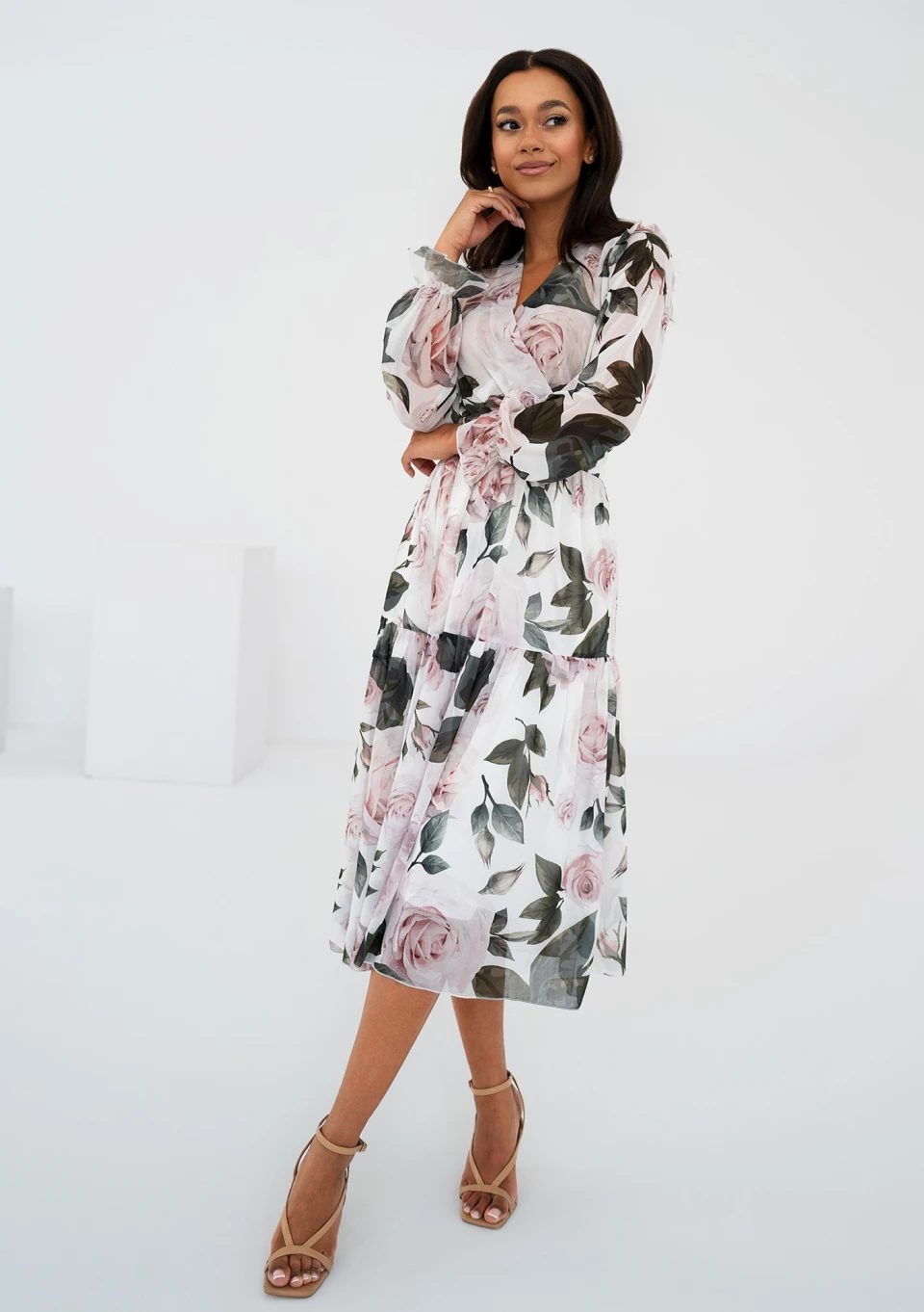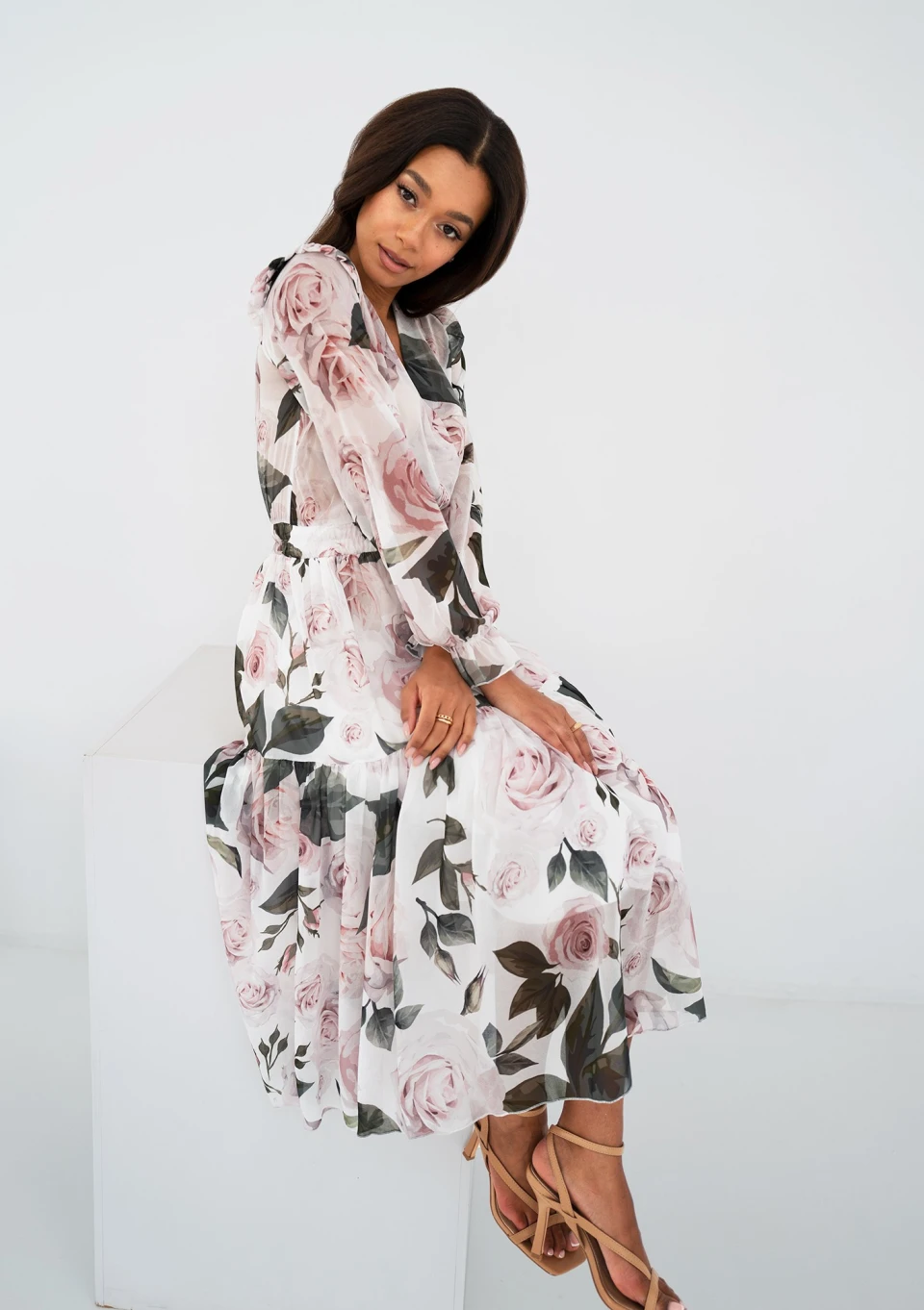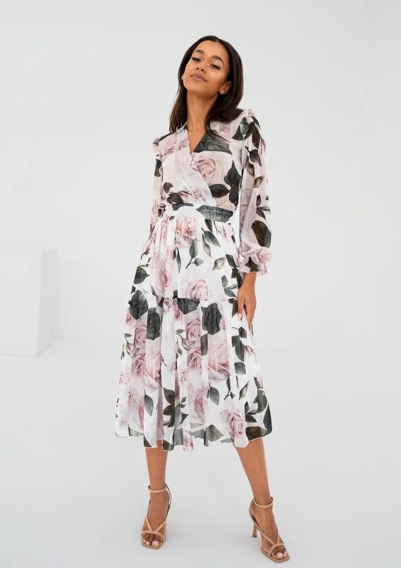 Maya - Roses printed chiffon midi dress