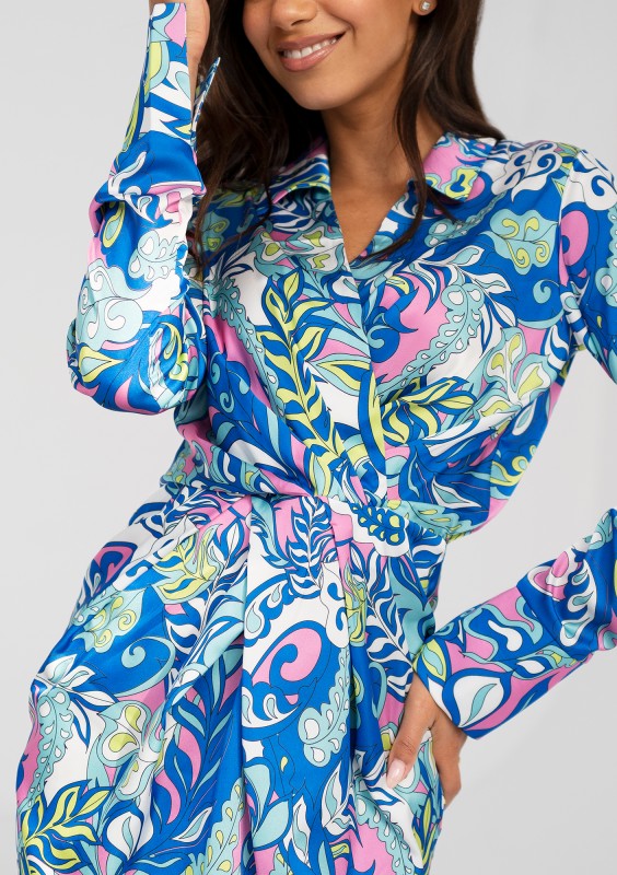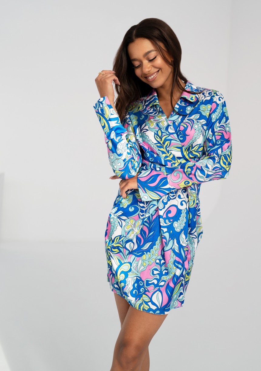 Nita - Blue printed satin mini dress