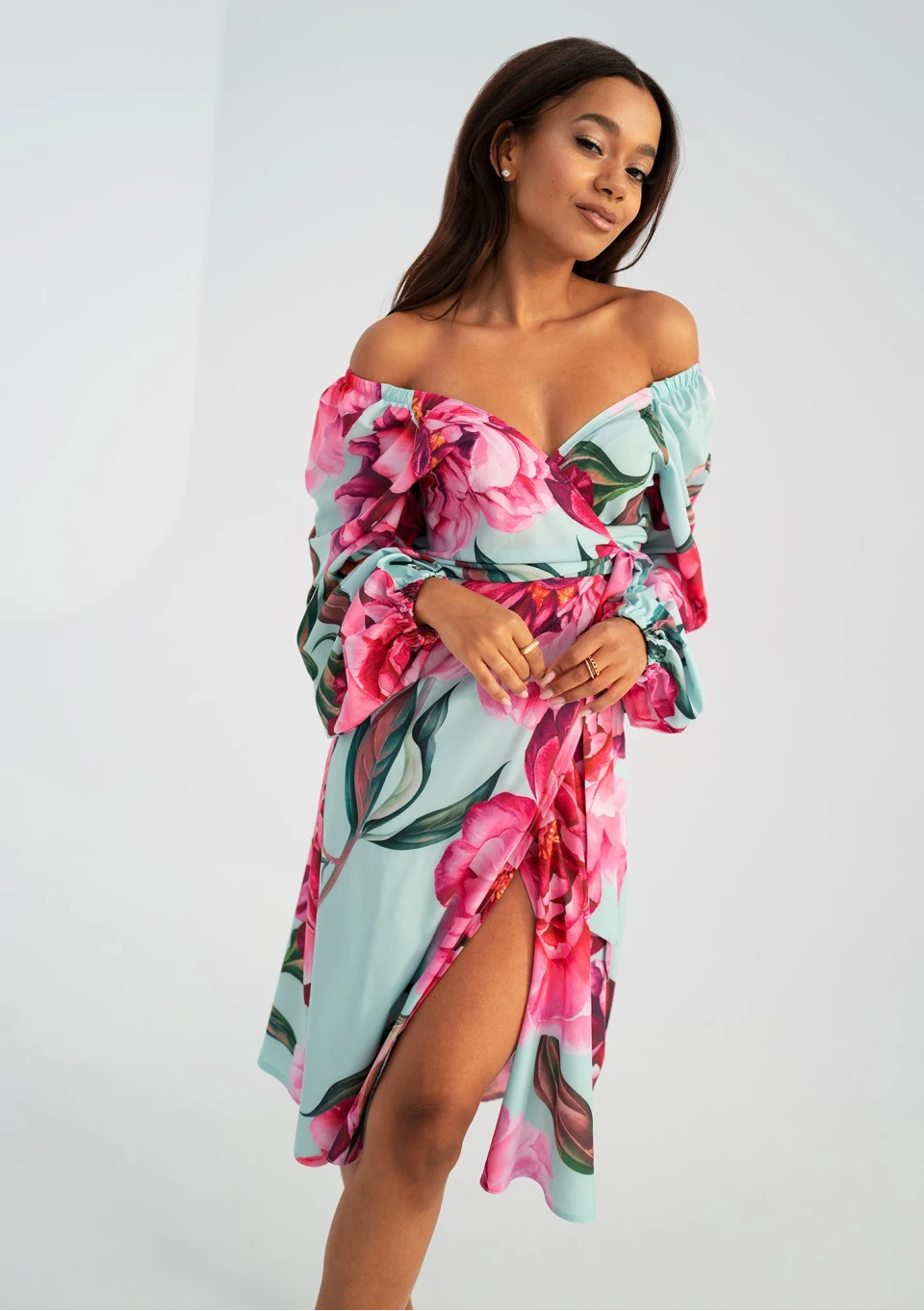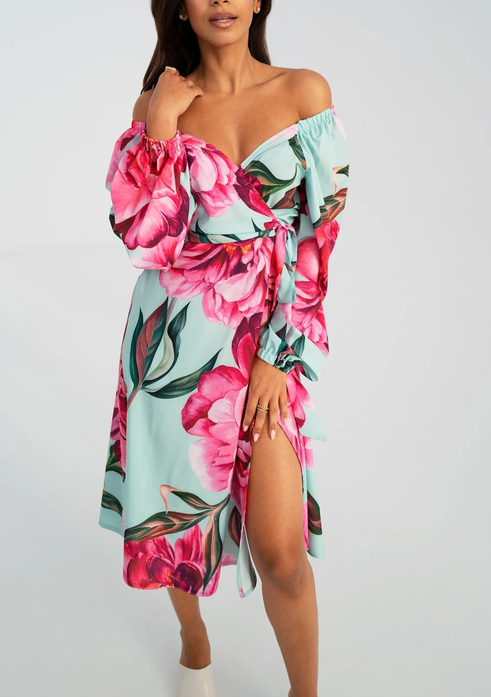 -40% Blanche - Blue peony printed mid-length wrap dress zł299.99 zł179.99 Lowest price from the last 30 days zł299.99
