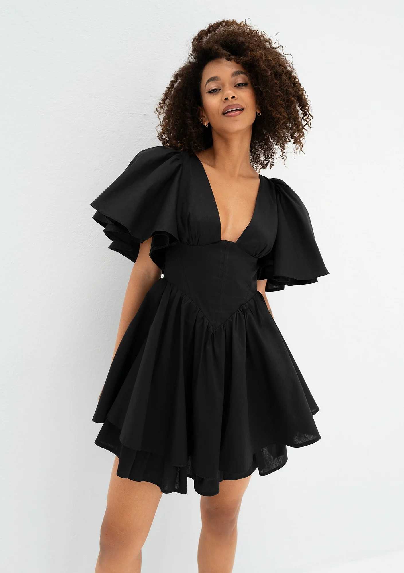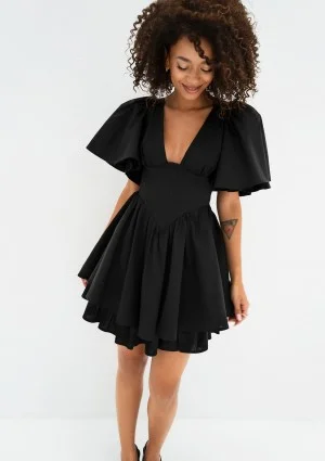 Neyla - Black mini dress with frilled sleeves