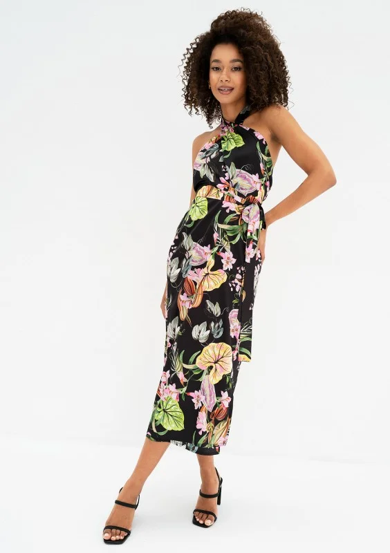 Evita - Black floral rayon midi dress