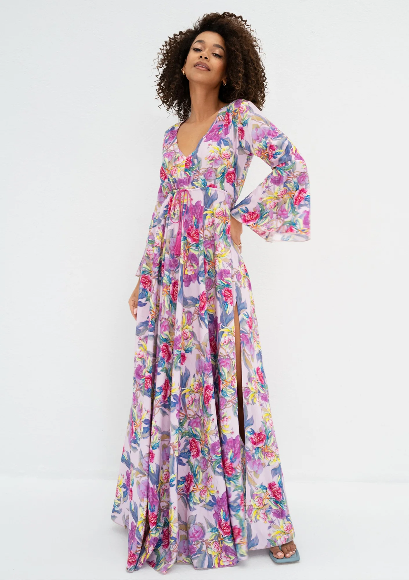 Aliyah - Boho lila floral patterned maxi dress