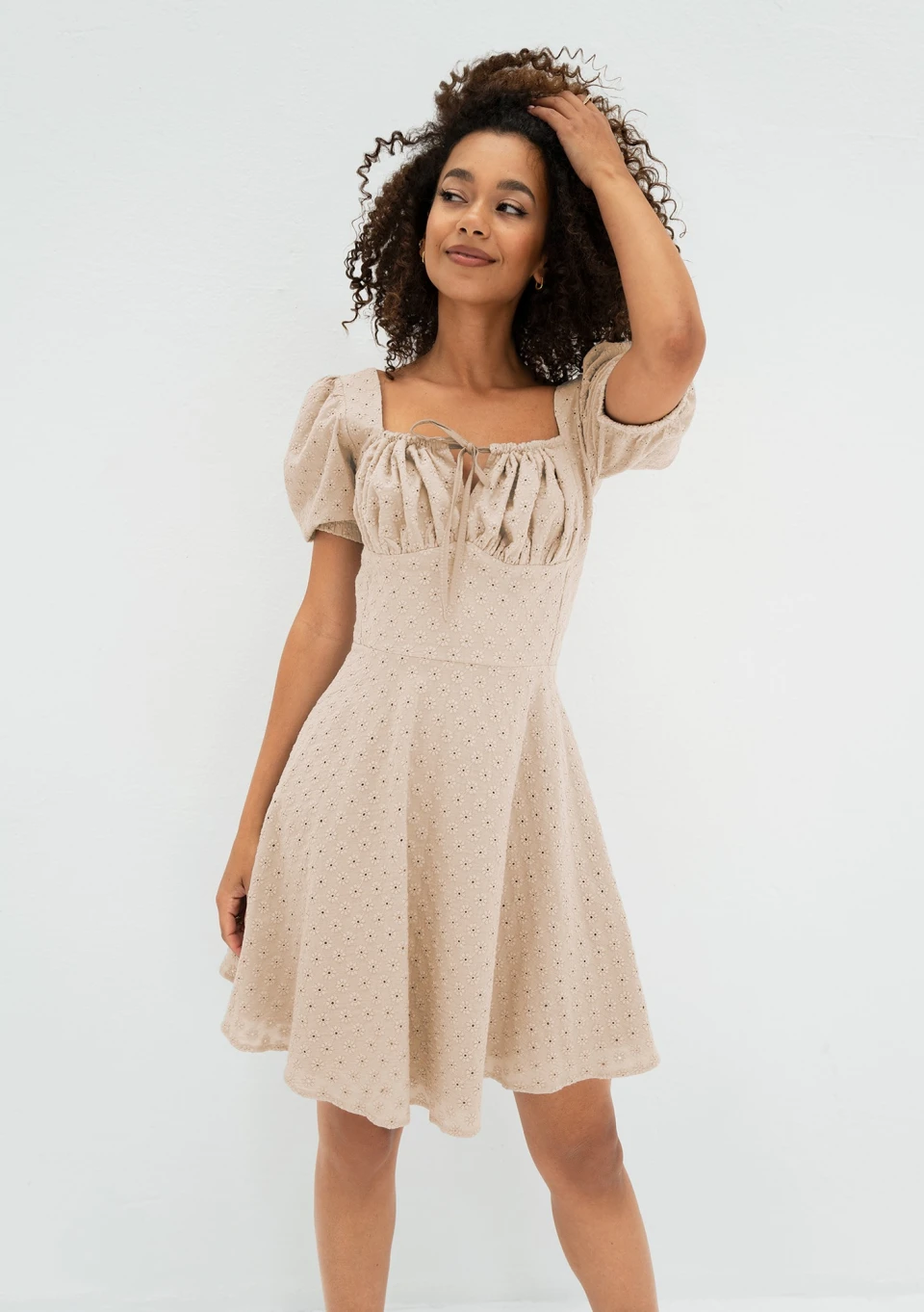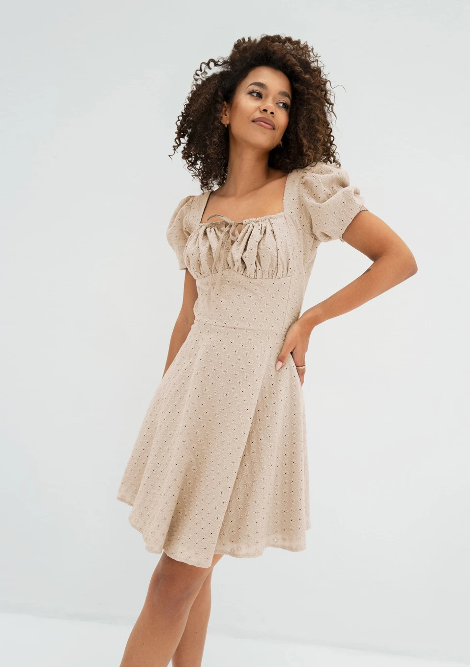 Lucy - Beige openwork mini dress