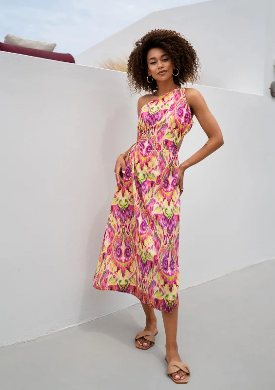 Tracy - Asymmetric boho printed midi dress