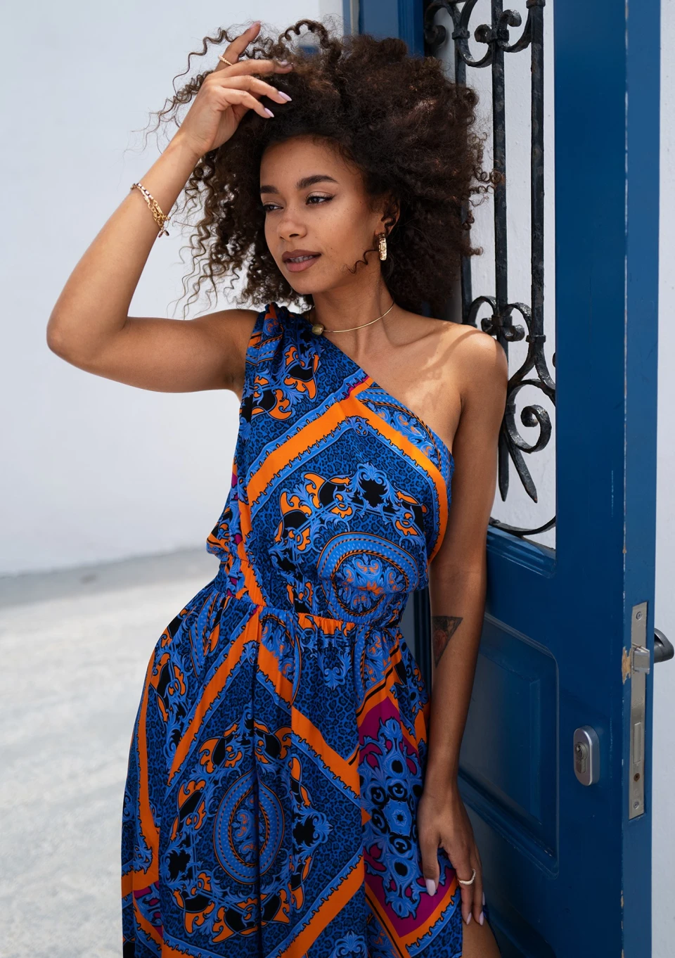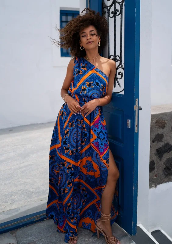 Azur - Asymmetric cobalt blue printed maxi dress
