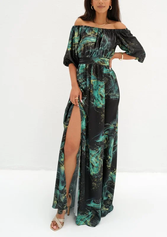 Cayli - Maxi green smoke printed summer dress