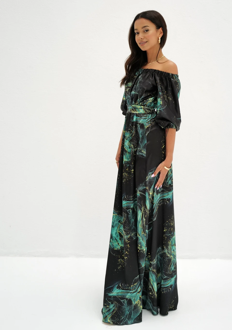 Elvire - midi satin dress green marble