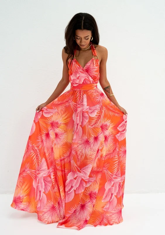 Callina - Orange leaves printed maxi dress