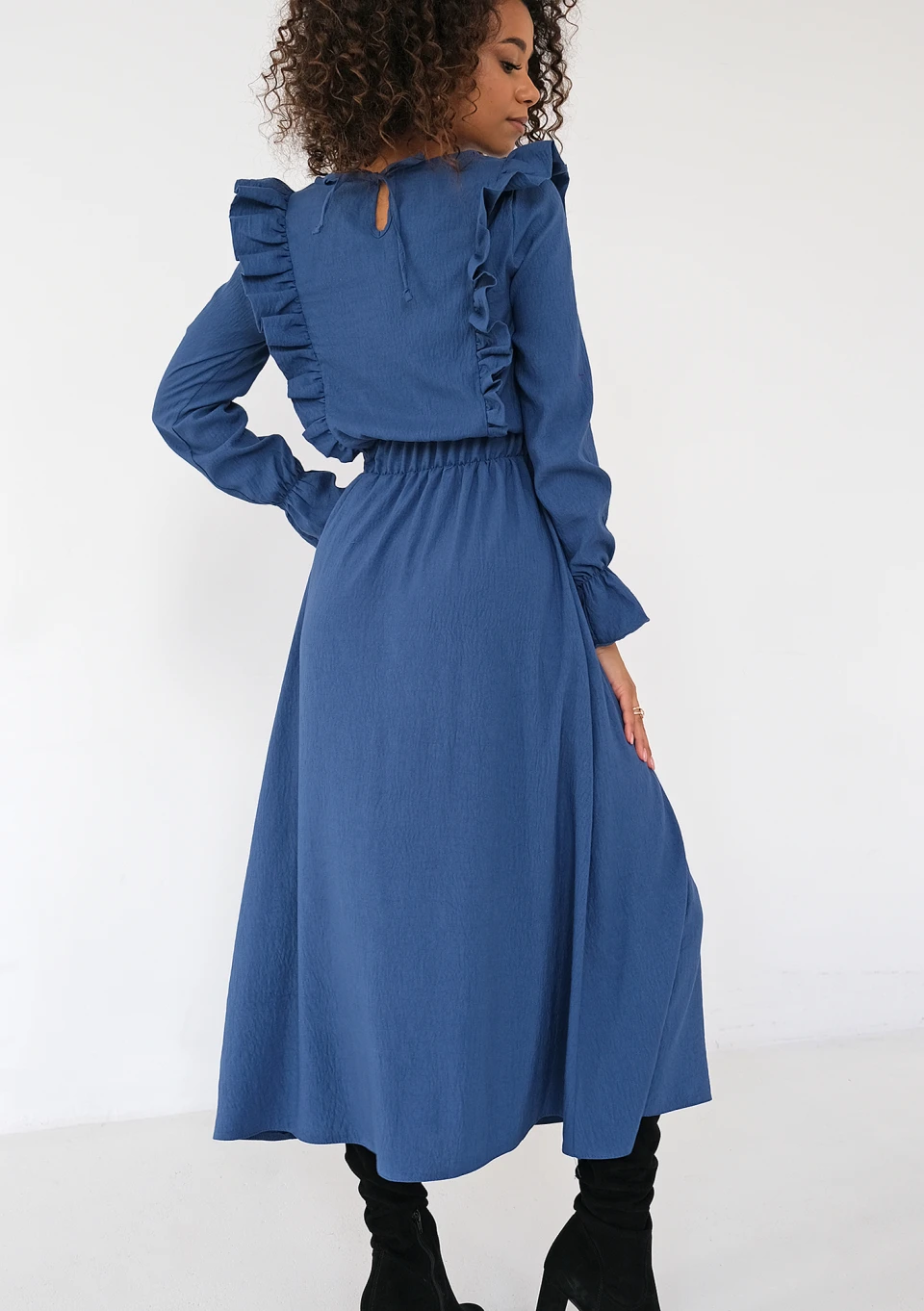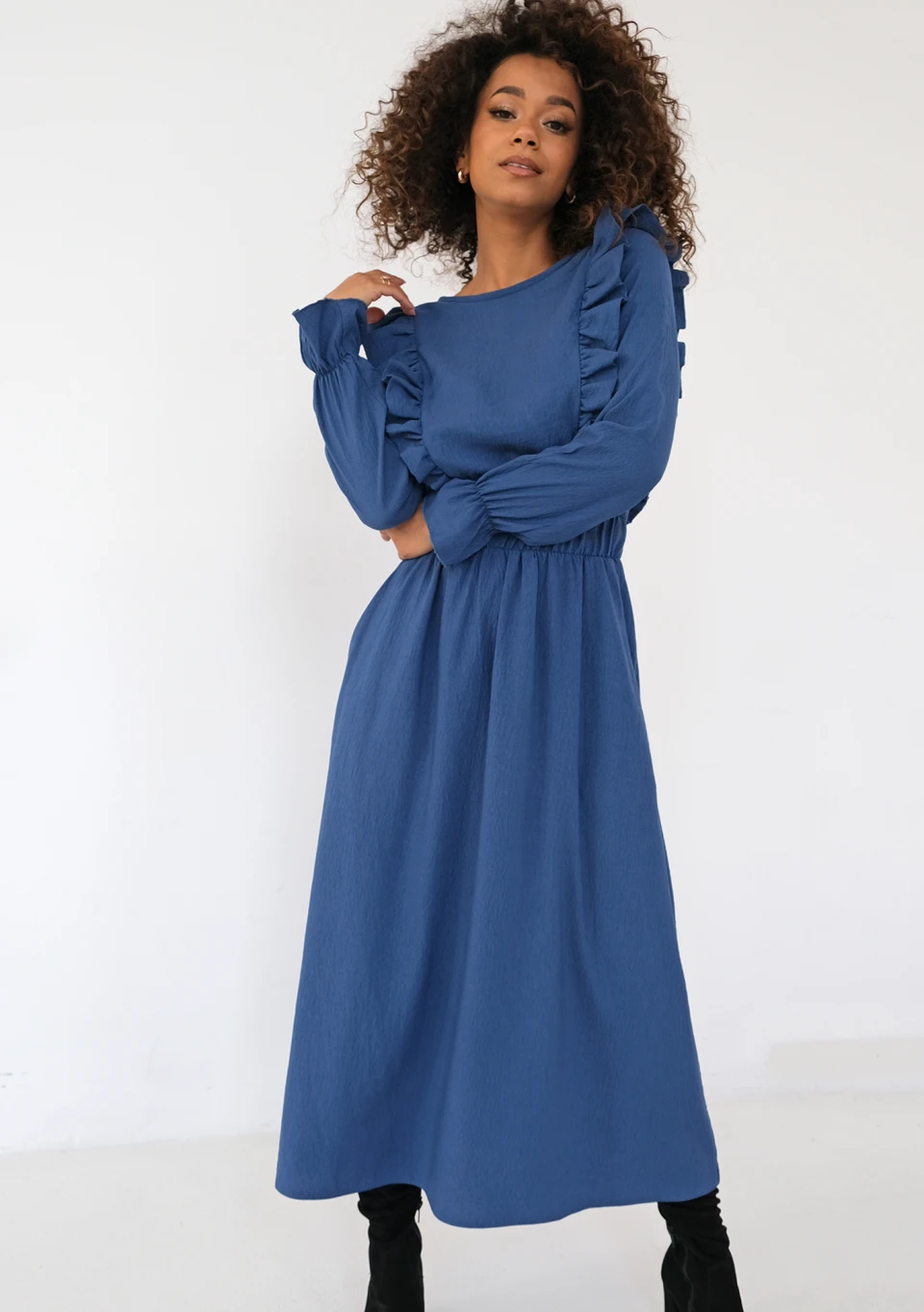 Olena - Blue midi dress with frills